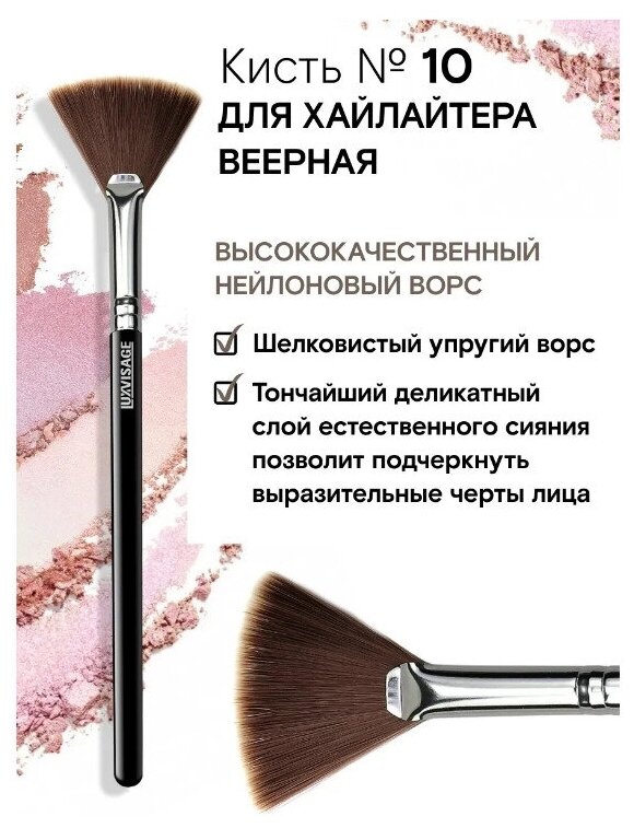Кисть косметическая № 10 для хайлайтера веерная высококачественный нейлоновый ворс luxvisage Lux Visage (1509882)