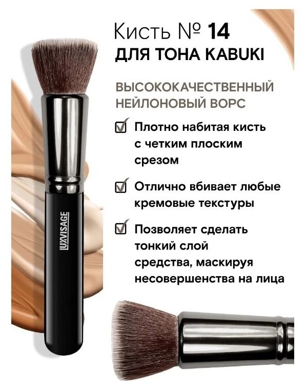 Кисть косметическая № 14 для тона kabuki высококачественный нейлоновый ворс luxvisage Lux Visage (1509882)