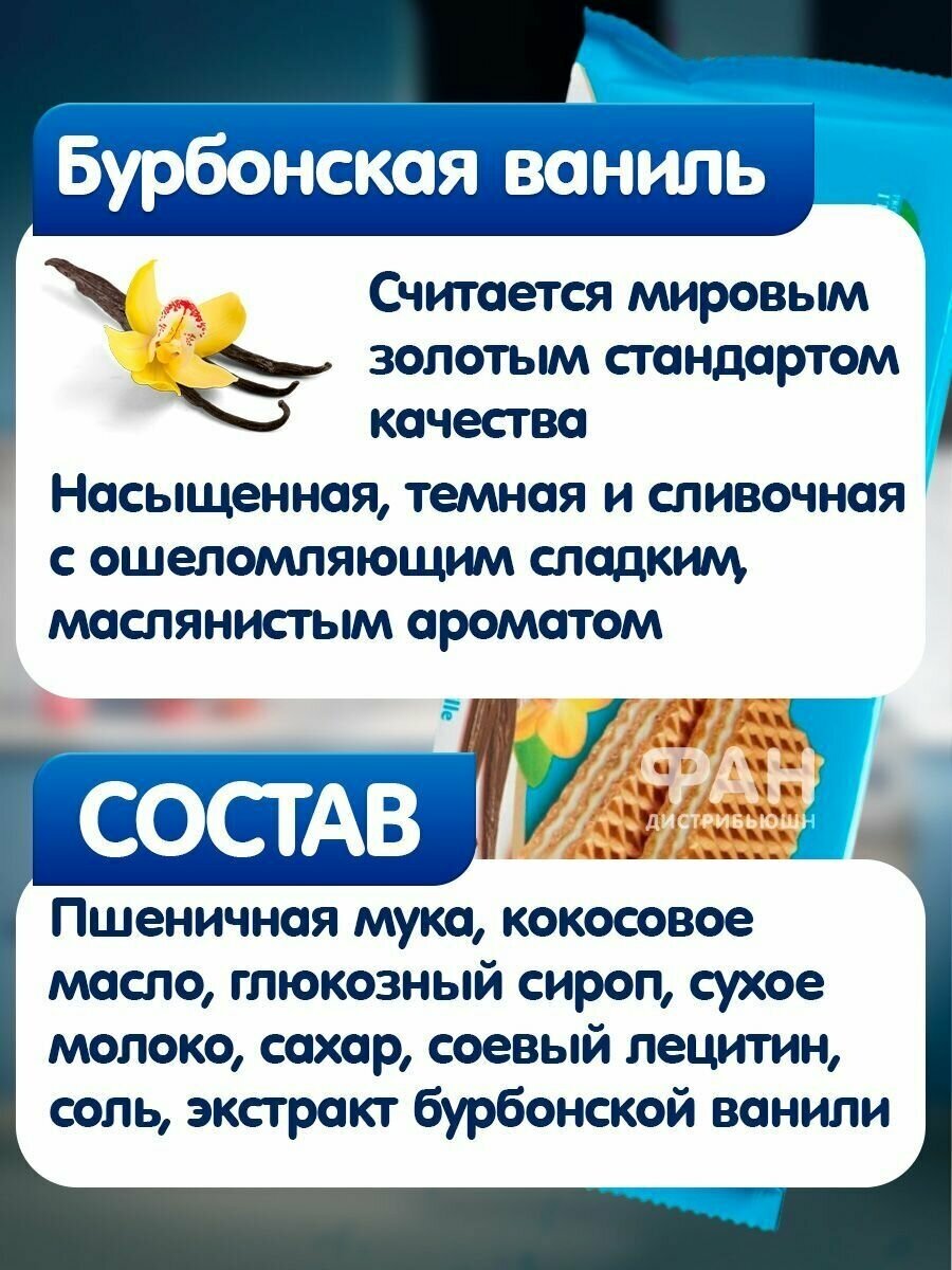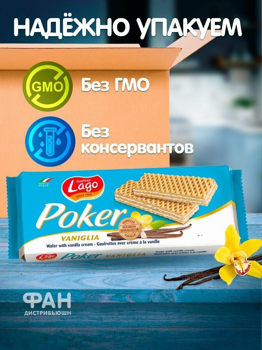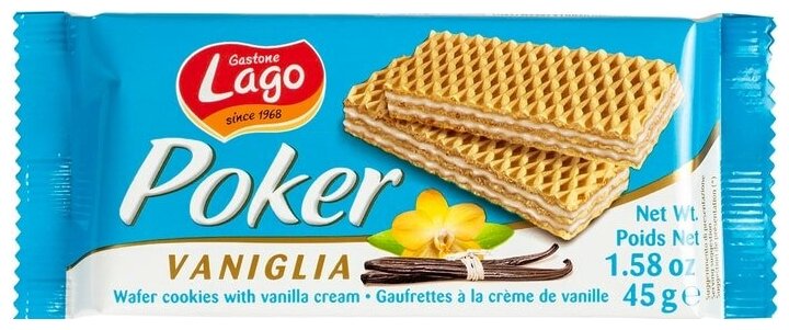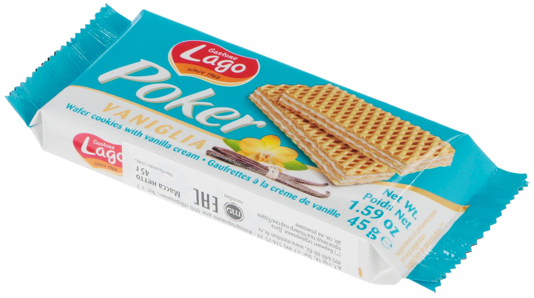 Бурбонская ваниль в составе вафель Gastone Lago Poker считается лучшим сортом ванили в мире. Она имеет насыщенный, сливочный вкус с ошеломляющим сладким, маслянистым ароматом. Ванильные вафли изготовлены итальянской компанией Gastone Lago, которая является одним из крупнейших европейских производителей кондитерских изделий и радует своими десертами гурманов по всему миру с 1968 года. Gastone Lago использует самые современные технологии и лучшие ингредиенты. В составе нет пальмового масла, оно заменено на кокосовое. Качество ванильных вафель соответствует стандартам IFS, HALAL, KOSHER. Итальянские вафли с ванилью не содержат ГМО и консервантов. Вафли с бурбонской ванилью идеально подойдут в качестве сладкого перекуса, к чаю или кофе и в качестве ингредиента для десертов. Насладитесь потрясающим вкусом изысканных итальянских вафель