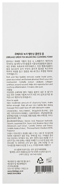 Пенка для умывания Lebelage балансирующая пенка с зеленым чаем 180мл