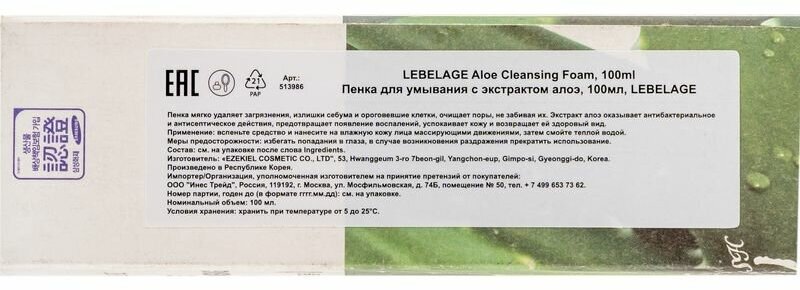 | Коллекция | Lebelage Aloe Cleansing Foam |