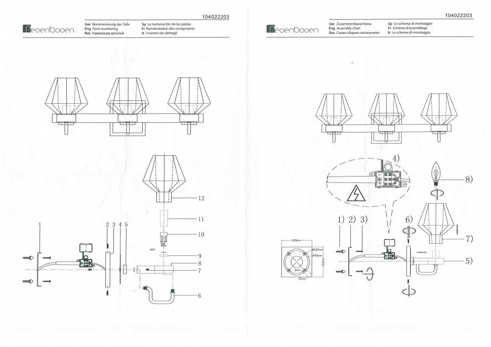 Тип товара: Бра с 3 лампами