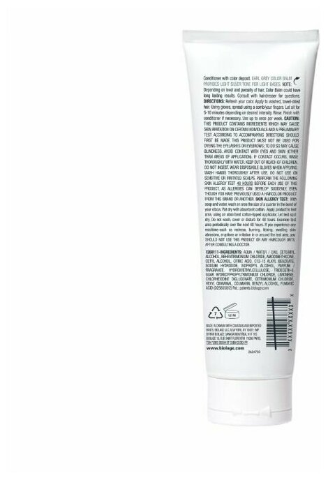 | Состав | Aqua, Cetearyl Alcohol, Behentrimonium Chloride, Amodimethicone, Cetyl Alcohol, Citric Acid, C12-15 Alkyl, Benzoate, Sodium Hydroxide, Isopropyl Alcohol, Parfum, Hydroxyethylcellulose, Trideceth-6, Guar Hydroxypropyltrimonium Chloride, Acid Violet 43 (CI 60730), Limonene, HC Blue No. 2, Chlorhexidine Digluconate, Cetrimonium Chloride, Hexyl Cinnamal, Coumarin, Benzyl Alcohol, Fumaric Acid, 2-Nitro-5-Glyceryl Methylaniline |