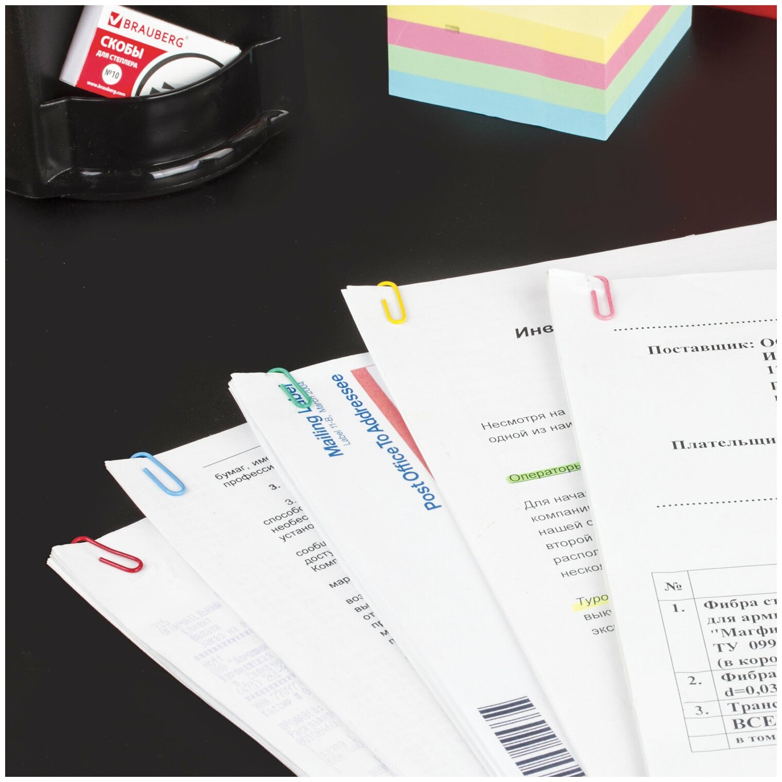 Скрепки изготовлены из стали с нанесением цветного пластикового покрытия.