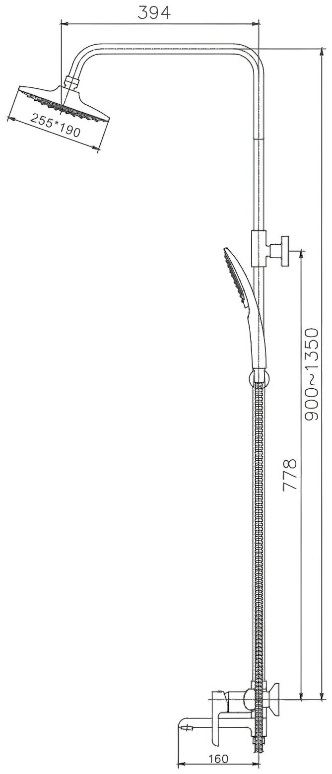 | Габариты верхнего душа | 255 |