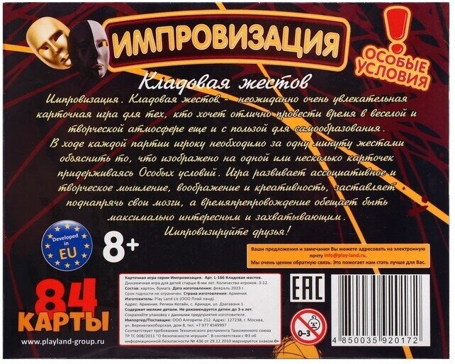 Настольная игра "Импровизация. Кладовая жестов" Не указан