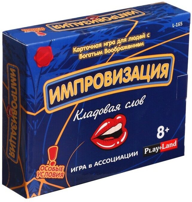 «Импровизация» - карточная игра в воображение для детей старше 8 лет и взрослых. В игре могут участвовать от 2 до 6 игроков. Цель игроков – придерживаясь определенных условий максимально быстро и точно объяснять изображения на карточках другим игрокам, получая за это очки. Игра помогает развить свою фантазию, креативность, способности мышления и реакцию. Игра так же заставит поломать голову при правильном подборе слов и увеличить свой словарный запас. Комплектность: 70 карт с картинками на каждой, 30 жетонов с буквами и 2 жетона с восклицательным знаком.