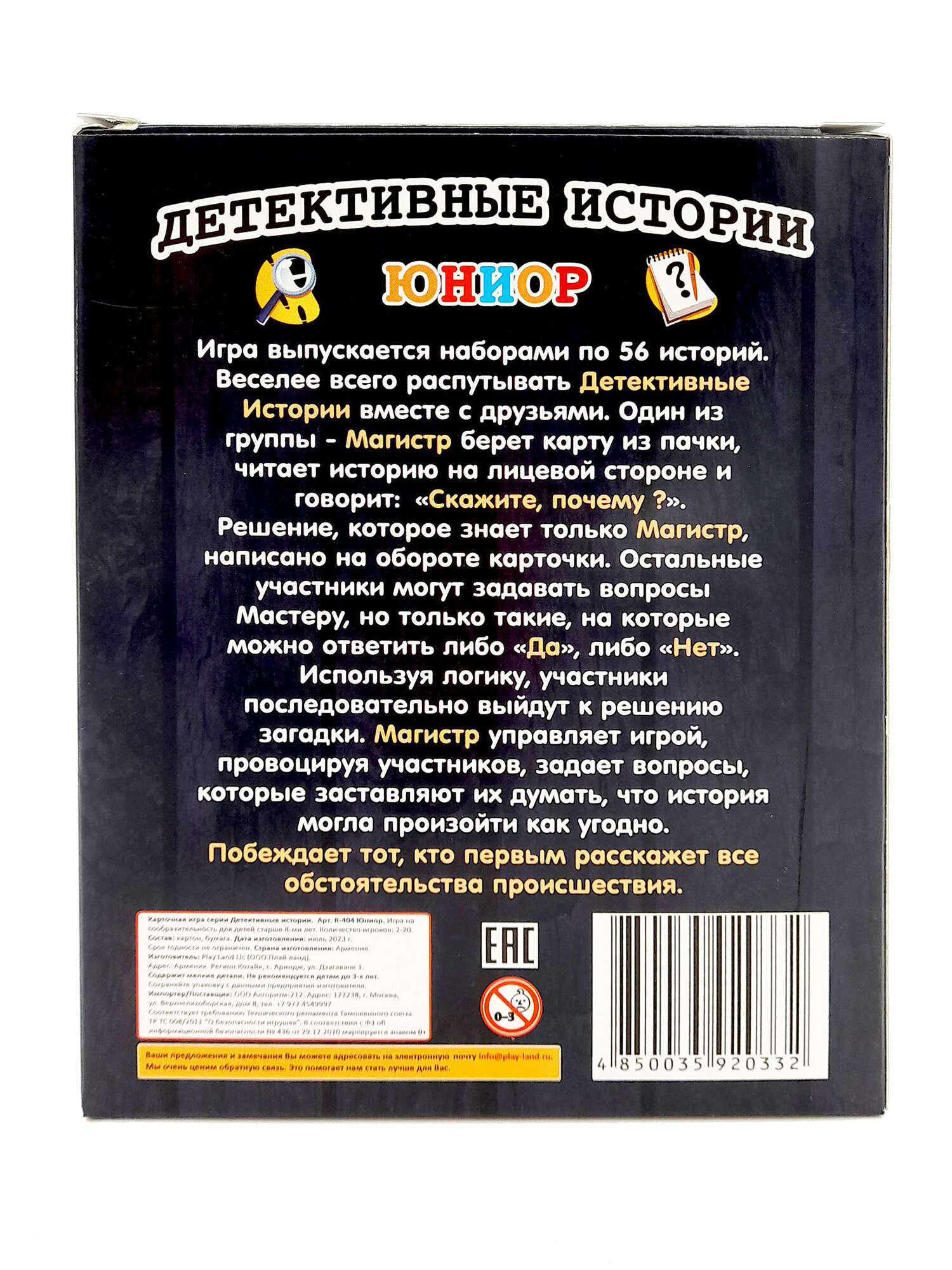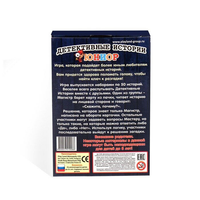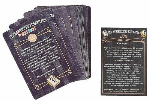 Игра выпускается наборами по 50 историй. Веселее всего распутывать Детективные ИСТОРИИ вместе с друзьями. Один из группы - Магистр берет карту из пачки, читает историю на лицевой стороне и говорит: «Скажите, почему?». Остальные участники задают вопросы Мастеру на которые можно ответить либо «Да», либо «Нет». Побеждает тот, кто первым расскажет все обстоятельства происшествия.