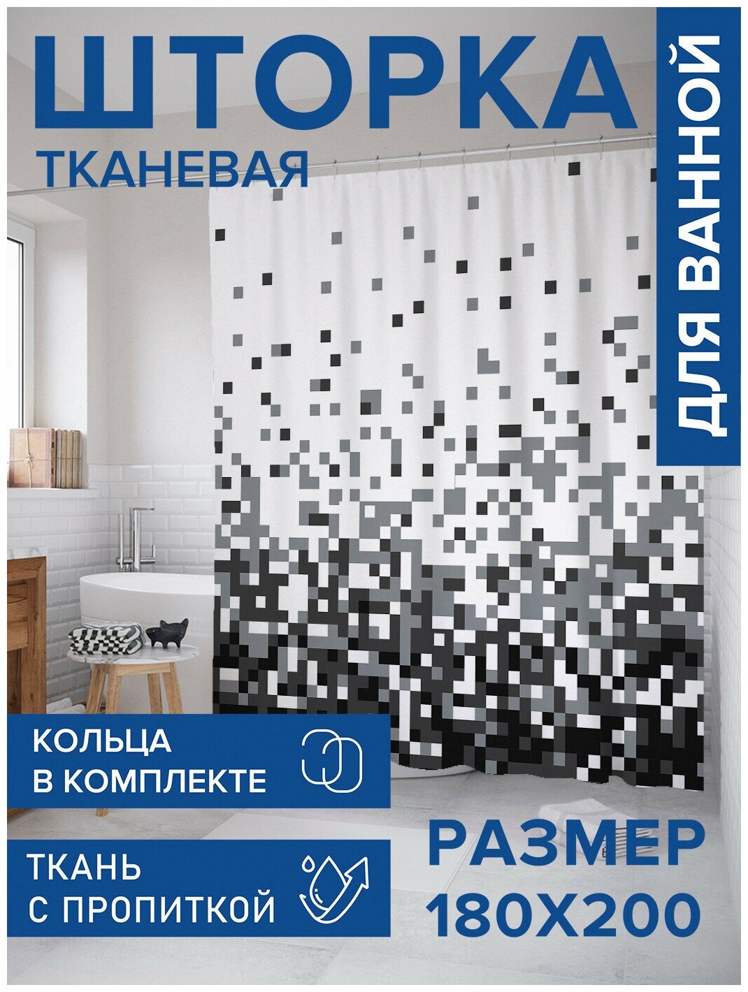 Модель: Штора-занавеска для ванной из сатена с крючками Скопление клеток 200х180 см