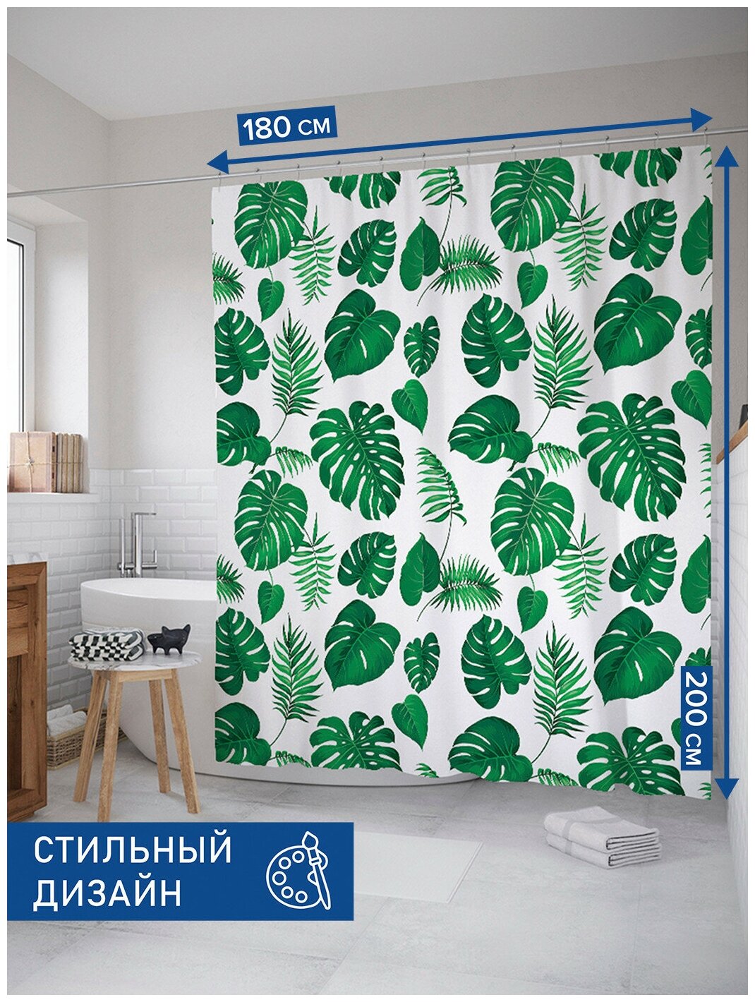Шторка-занавеска для ванной JOYARTY Штора-занавеска для ванной из сатена с крючками Папоротниковый дождь 200х180 см (размер: 180х200)