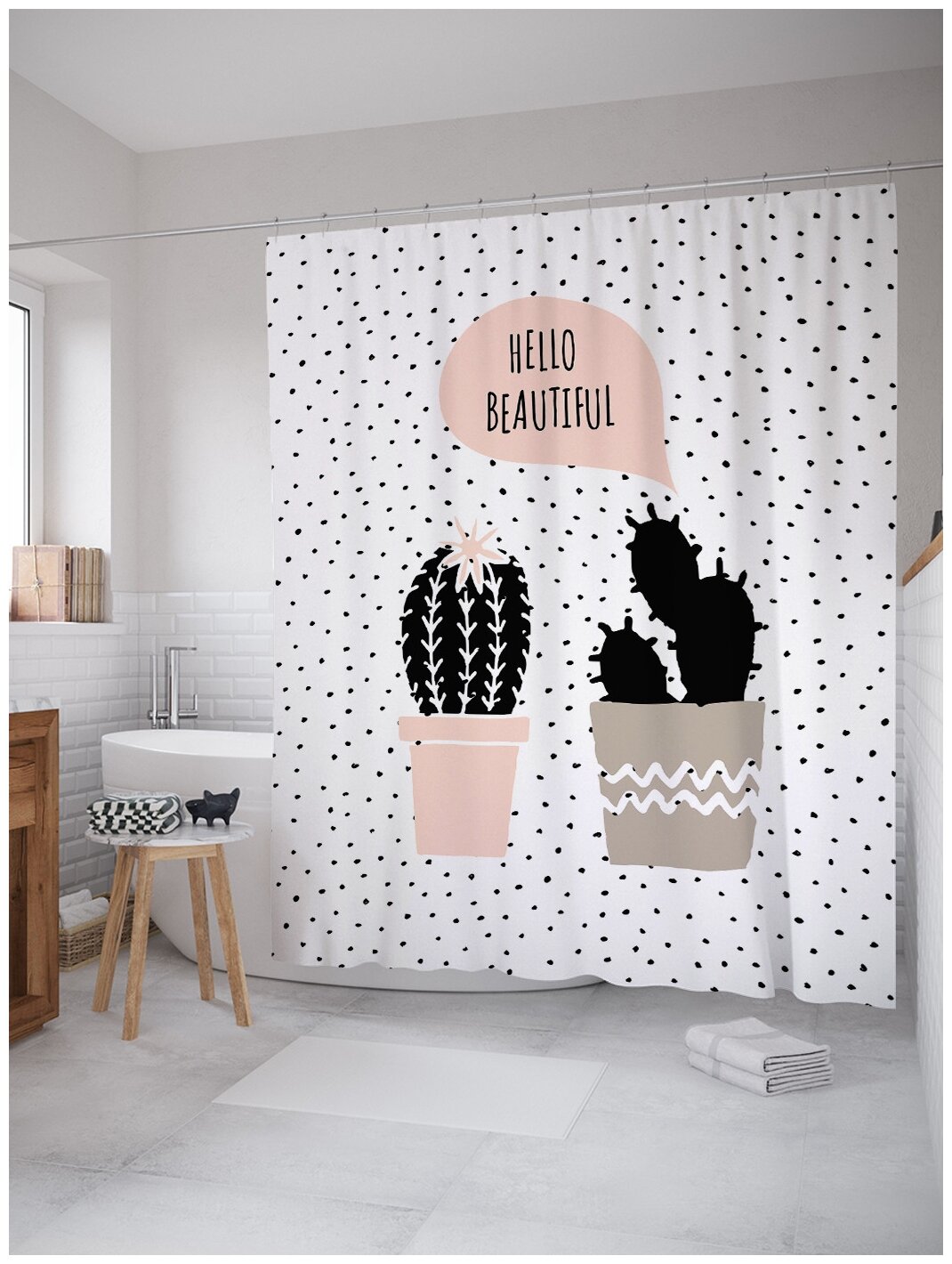 Шторка-занавеска для ванной JOYARTY Штора-занавеска для ванной из сатена с крючками Влюбленный кактус 200х180 см (размер: 180х200)