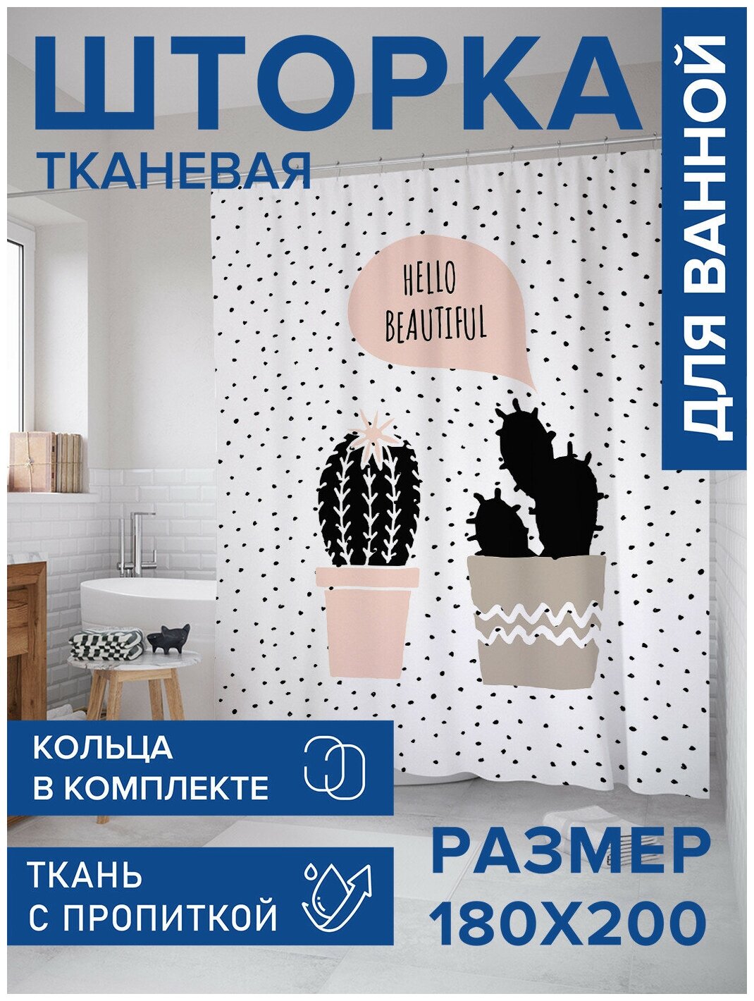 Модель: Штора-занавеска для ванной из сатена с крючками Влюбленный кактус 200х180 см