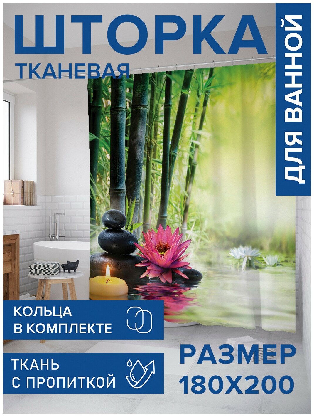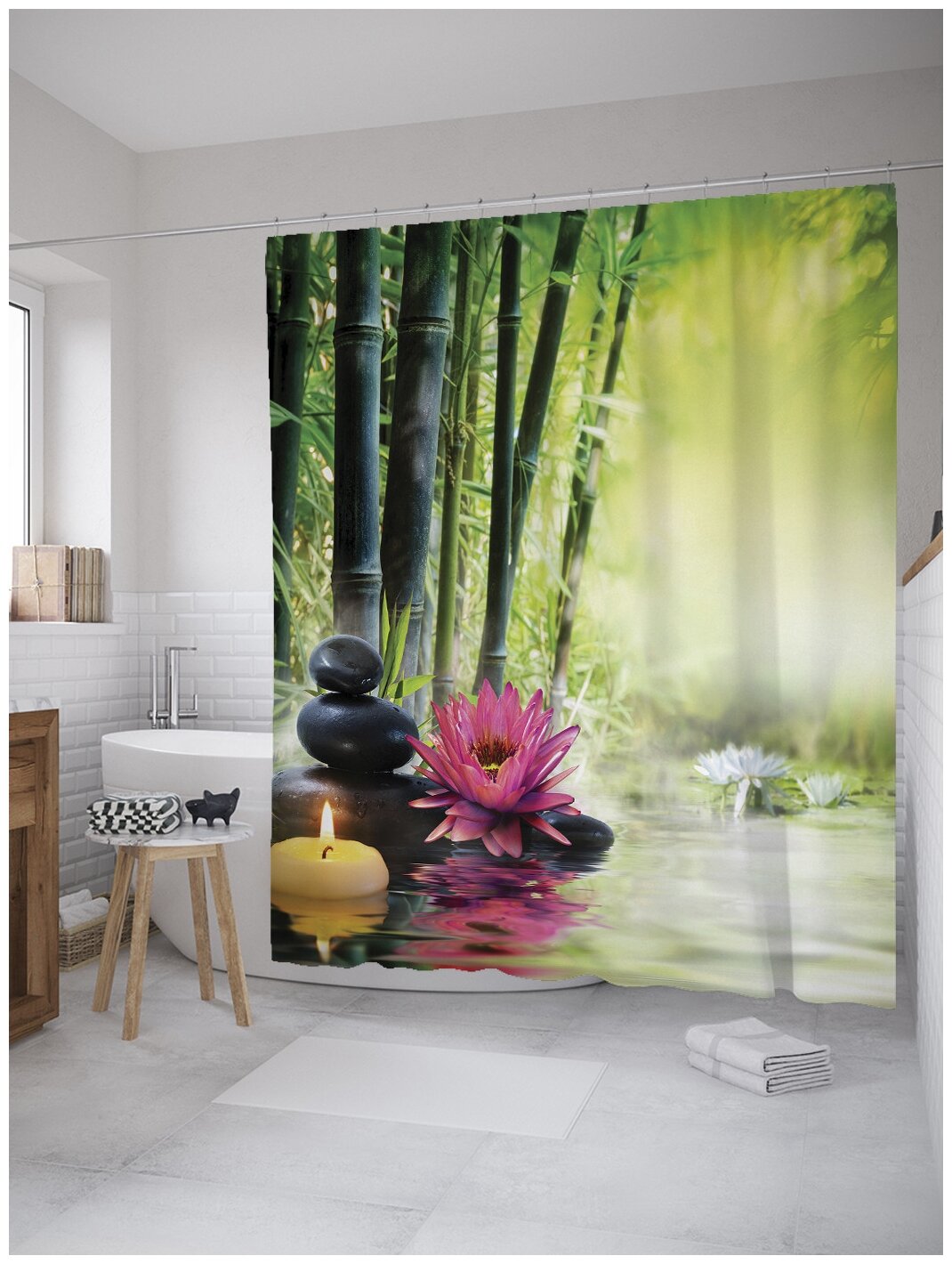 Шторка-занавеска для ванной JOYARTY Штора-занавеска для ванной из сатена с крючками Медитация в бамбуковом лесу 200х180 см (размер: 180х200)