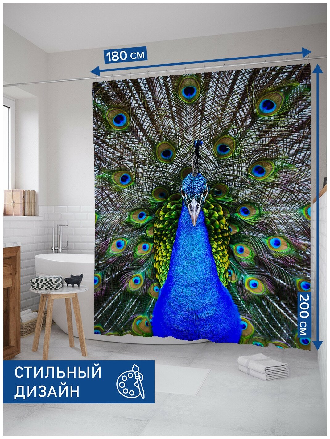 Шторка-занавеска для ванной JOYARTY Штора-занавеска для ванной из сатена с крючками Внимание павлина 200х180 см (размер: 180х200)