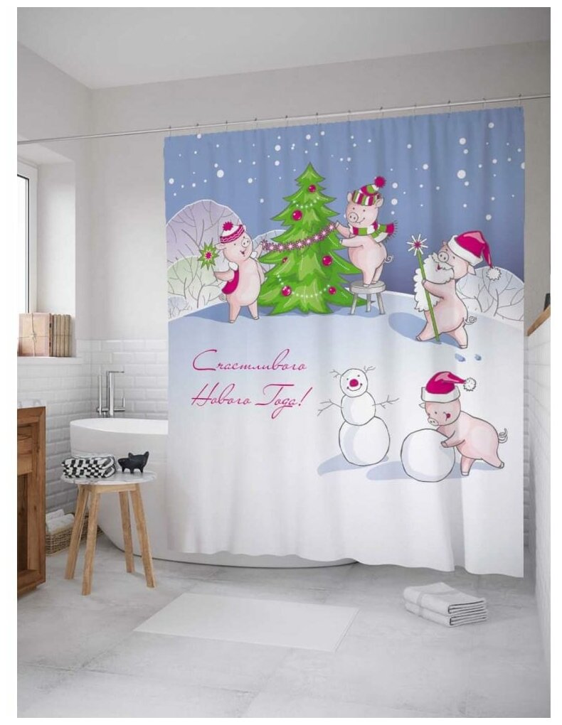 Шторы (шторка) для ванной JoyArty «Радостные свинки» 180x200 см Штора-занавеска для ванной из сатена с крючками Радостные свинки 200х180 см (размер: 180х200)