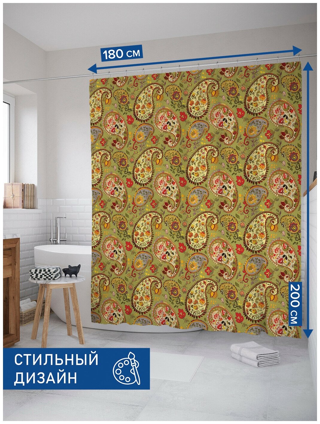 На сегодняшний день товар «Шторка-занавеска для ванной JOYARTY Штора-занавеска для ванной из сатена с крючками Зеленый пейсли 200х180 см (размер: 180х200)» можно купить с кешбеком в 1 магазине: Яндекс.Маркет