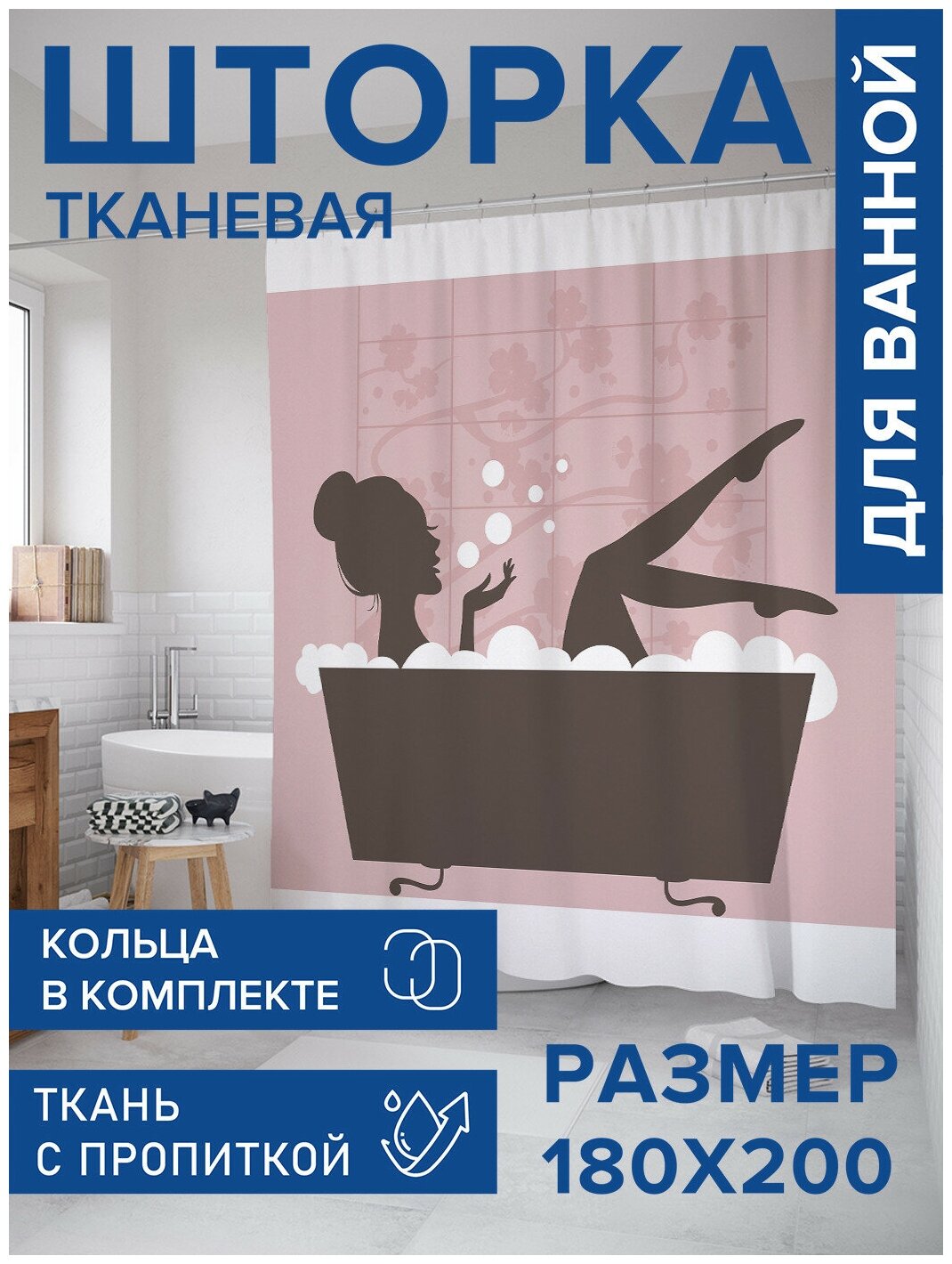 Шторка-занавеска для ванной JOYARTY Штора-занавеска для ванной из сатена с крючками Дама в ванной 200х180 см (размер: 180х200)