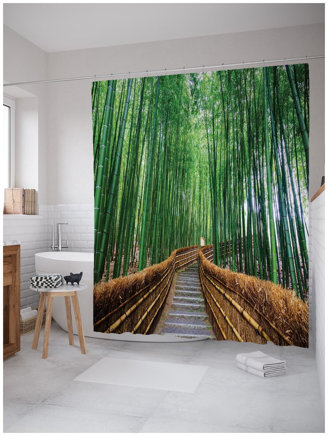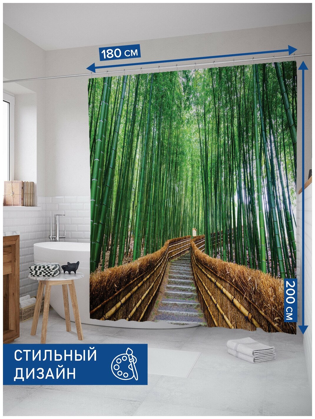 Штора для ванной JoyArty "Дорожка в бамбуковом лесу" из сатена 180х200 см с крючками Штора-занавеска для ванной из сатена с крючками Дорожка в бамбуковом лесу 200х180 см