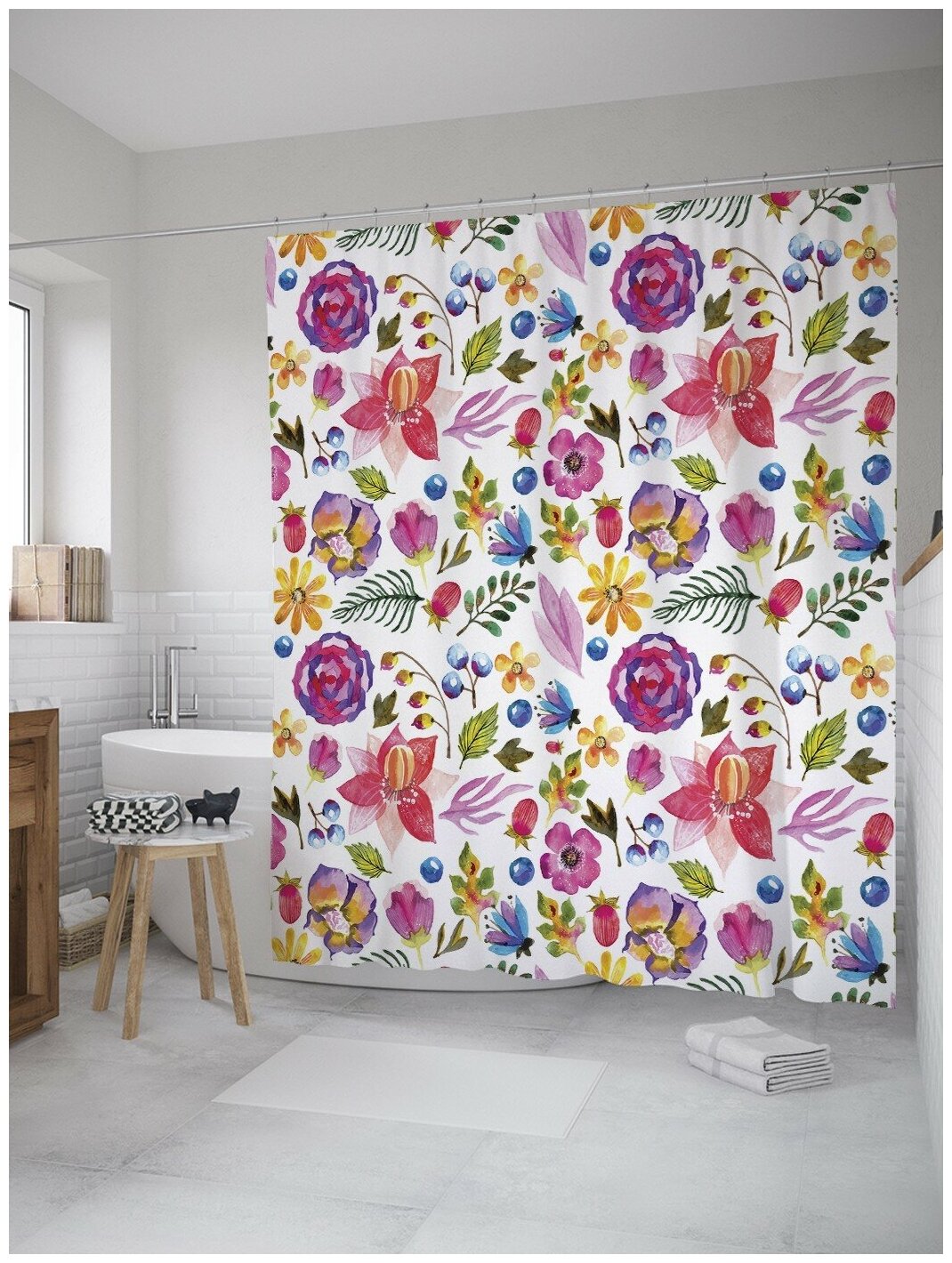 Шторка-занавеска для ванной JOYARTY Штора-занавеска для ванной из сатена с крючками Полевая радость 200х180 см (размер: 180х200)