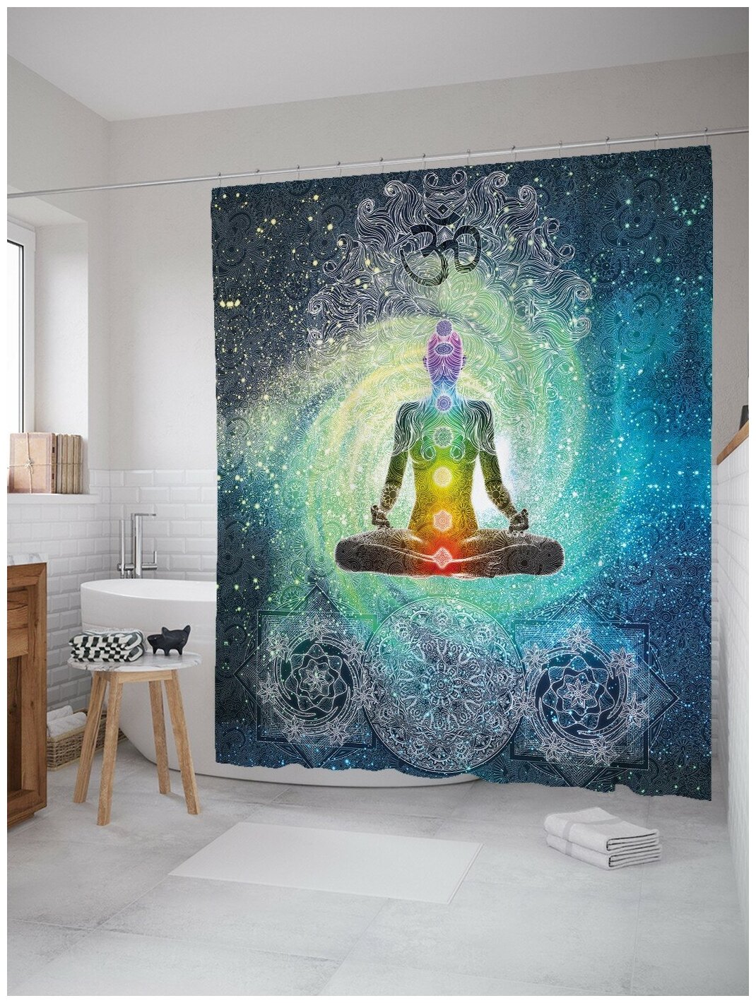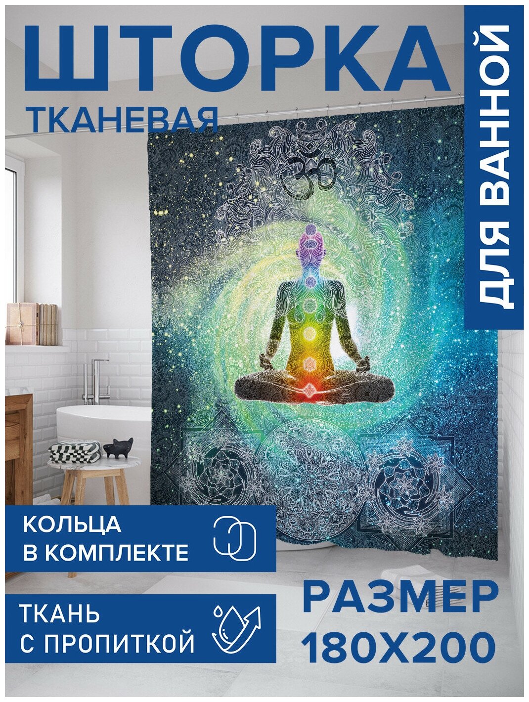 Шторка-занавеска для ванной JOYARTY Штора-занавеска для ванной из сатена с крючками Медитация 200х180 см (размер: 180х200)