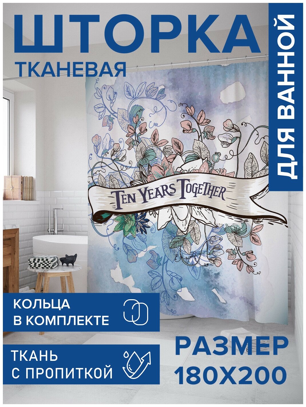 Шторка-занавеска для ванной JOYARTY Штора-занавеска для ванной из сатена с крючками 10 лет вместе 200х180 см (размер: 180х200)