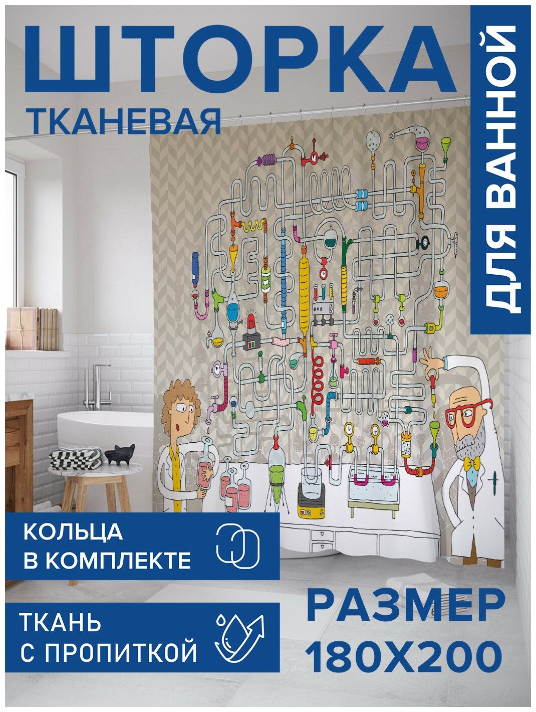 Шторка-занавеска для ванной JOYARTY Штора-занавеска для ванной из сатена с крючками Химическая лаборатория 200х180 см (размер: 180х200)