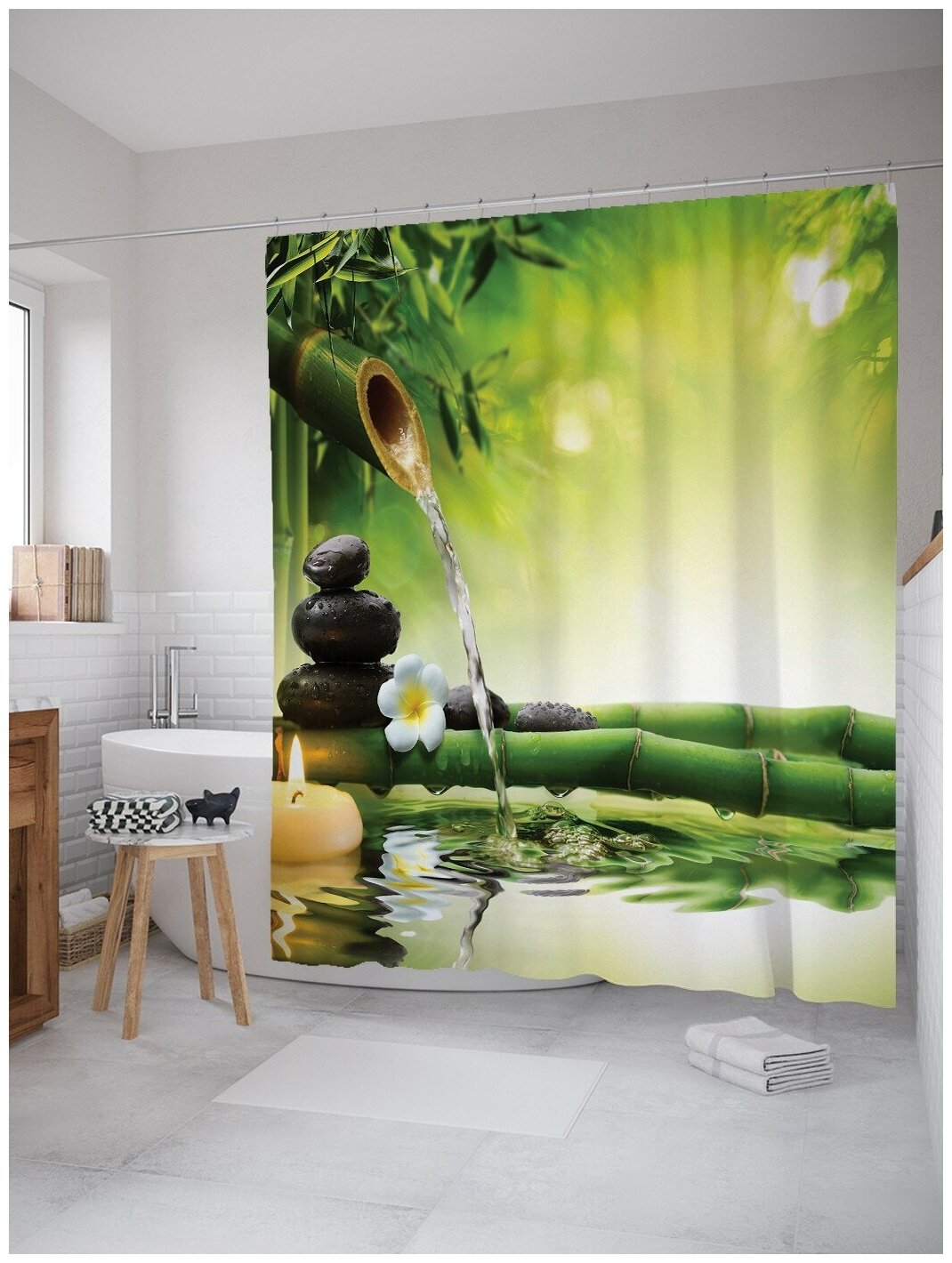 Шторка-занавеска для ванной JOYARTY Штора-занавеска для ванной из сатена с крючками Бамбуковый кран 200х180 см (размер: 180х200)
