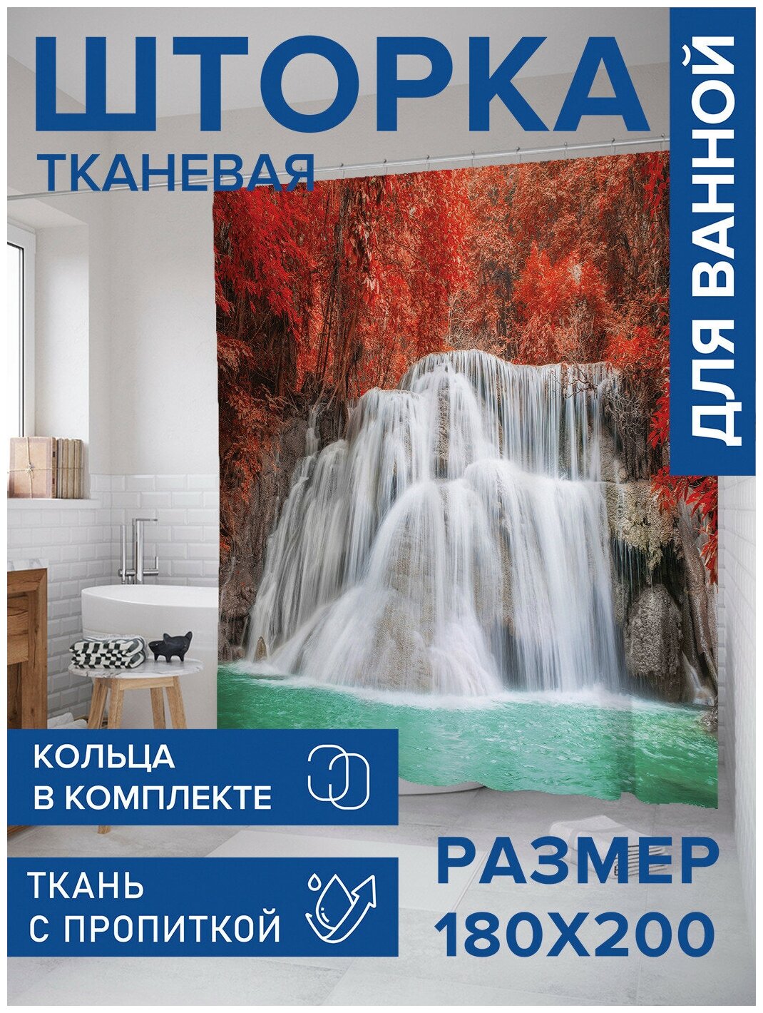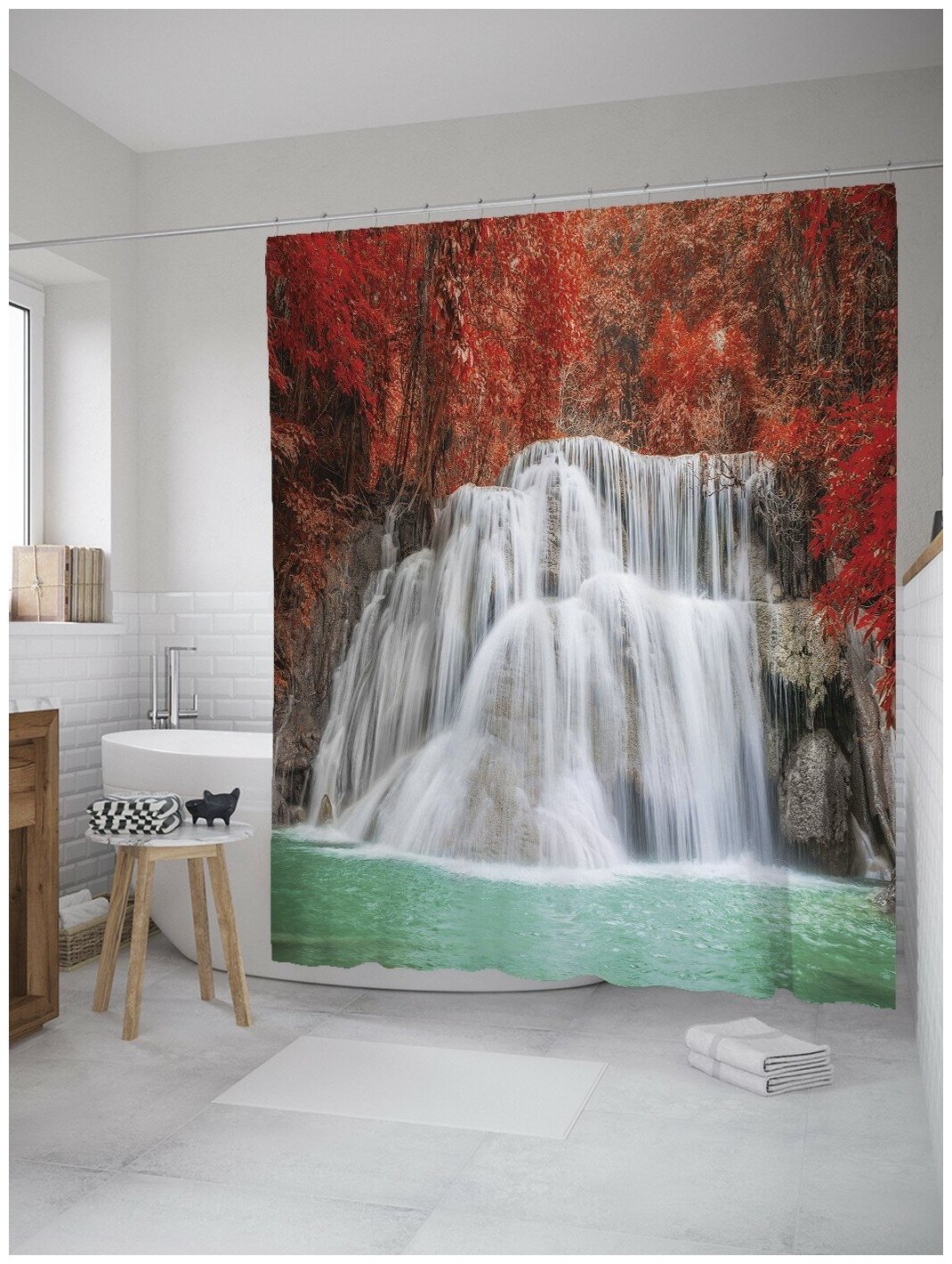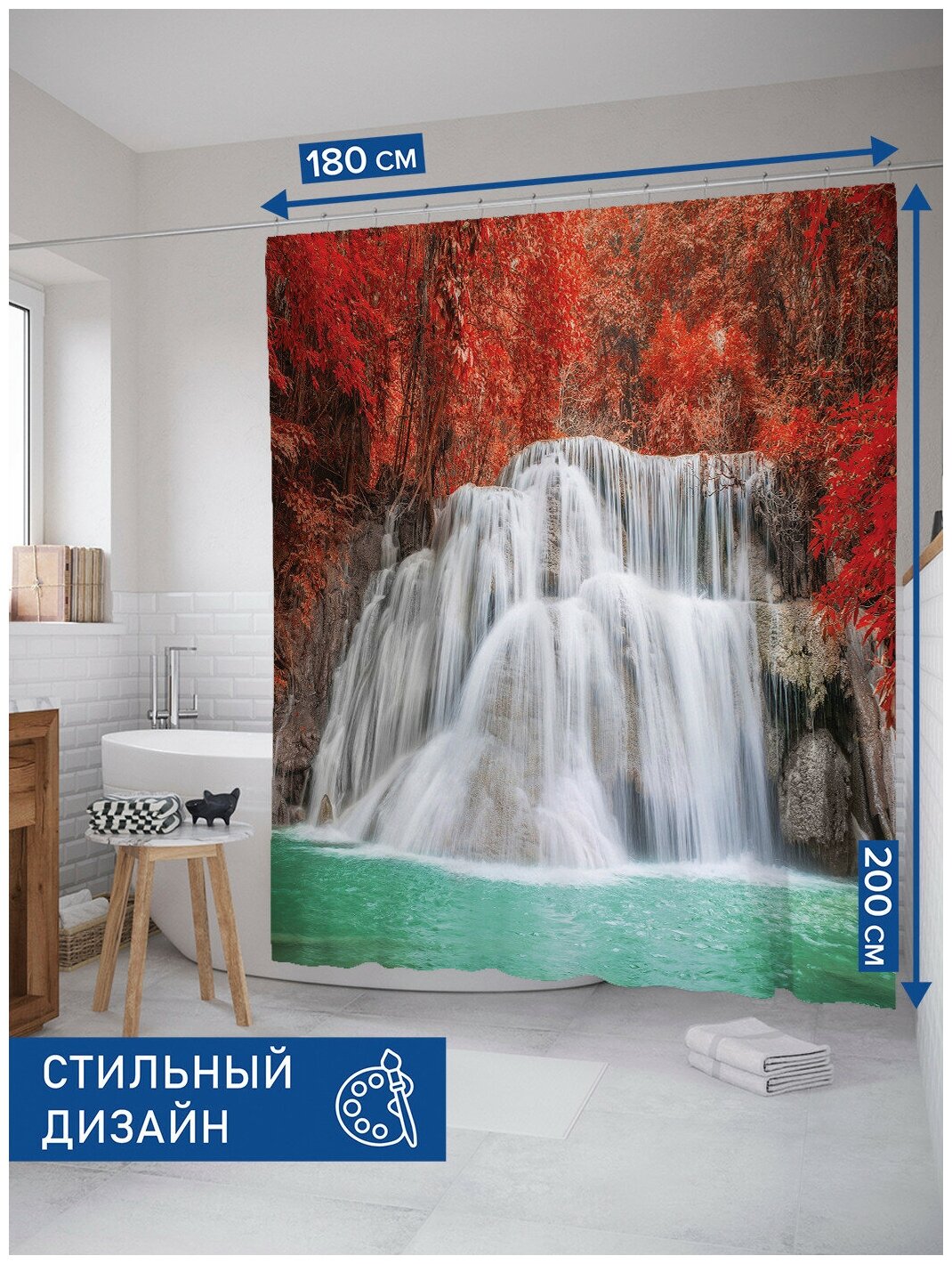 Штора для ванной JoyArty "Примечательный водопад" 180х200 см с крючками Штора-занавеска для ванной из сатена с крючками Примечательный водопад 200х180 см
