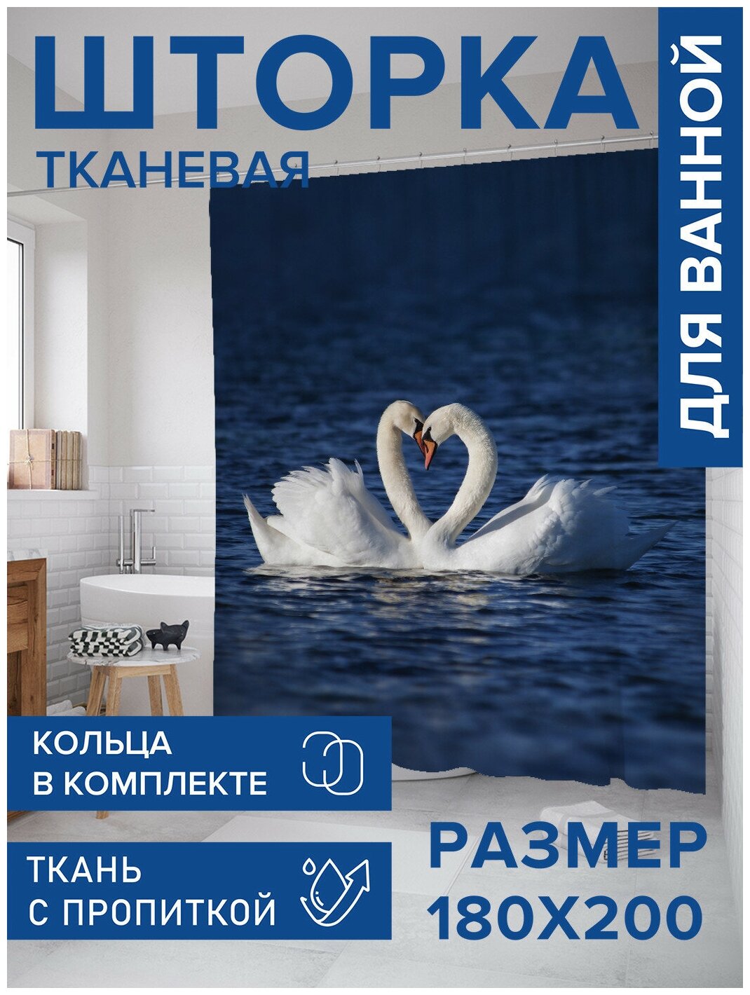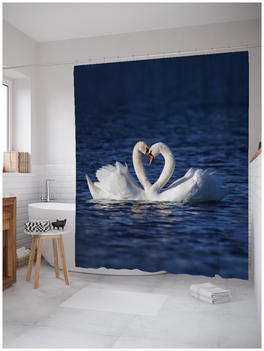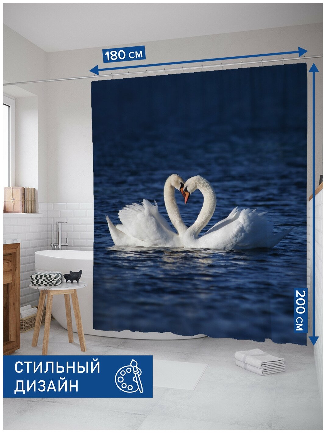 Шторка-занавеска для ванной JOYARTY Штора-занавеска для ванной из сатена с крючками Любовь лебедей 200х180 см (размер: 180х200)