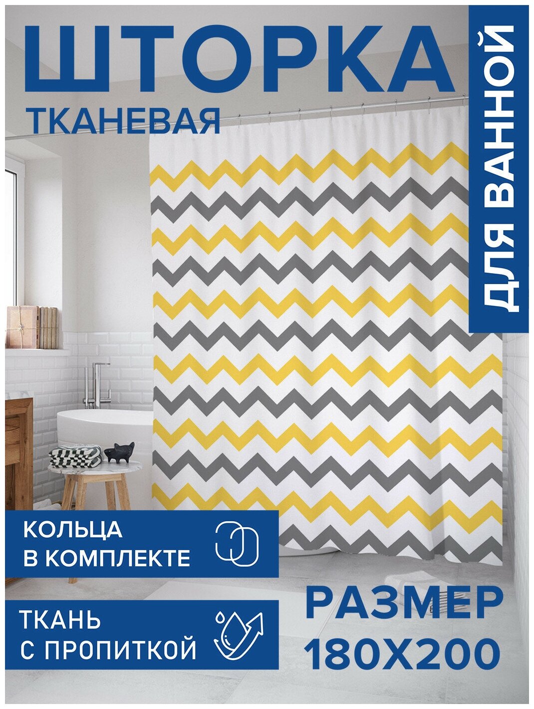 Шторка-занавеска для ванной JOYARTY Штора-занавеска для ванной из сатена с крючками Зигзаговые перемены 200х180 см (размер: 180х200)