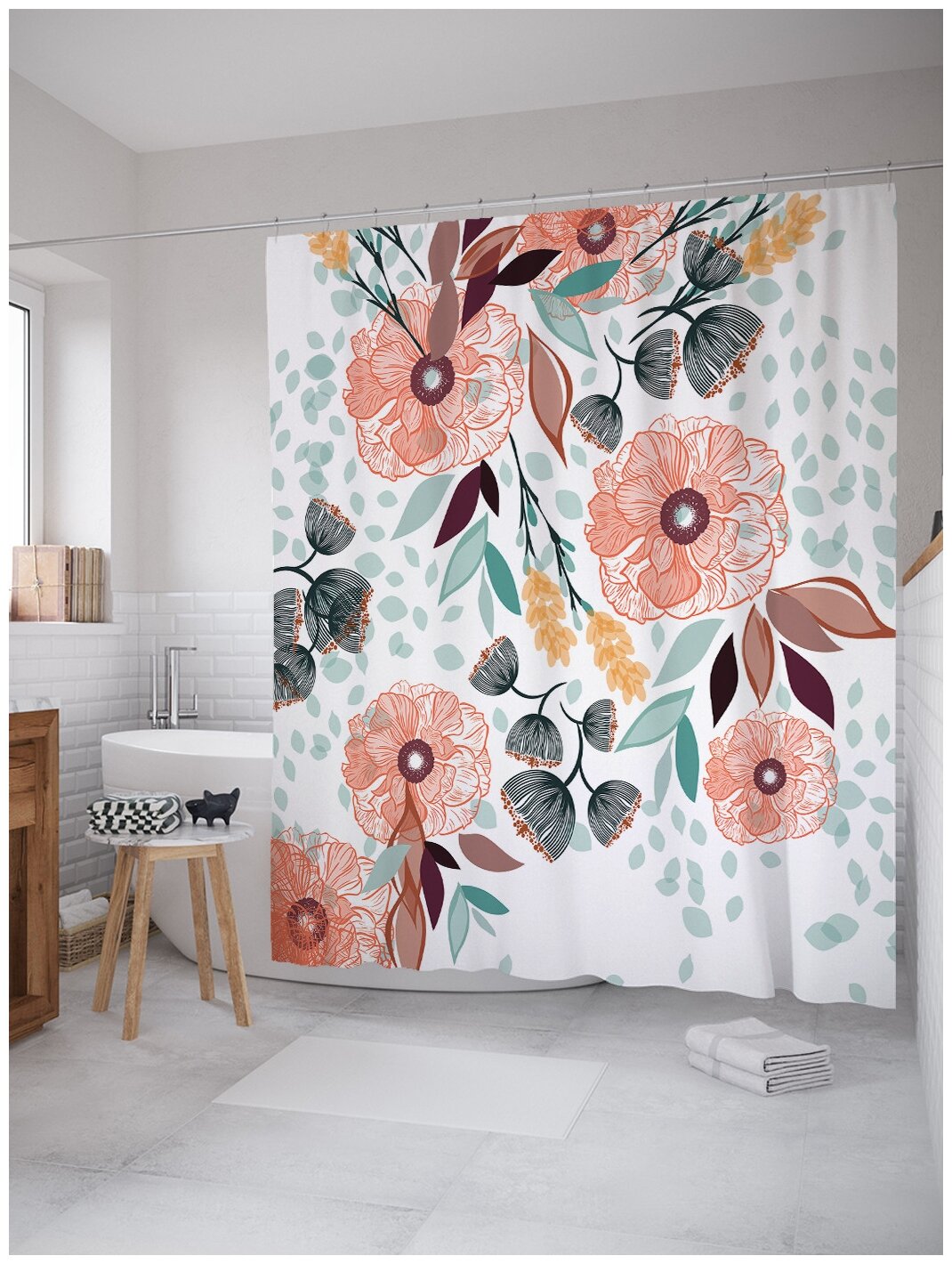Шторка-занавеска для ванной JOYARTY Штора-занавеска для ванной из сатена с крючками Пастельные маки 200х180 см (размер: 180х200)