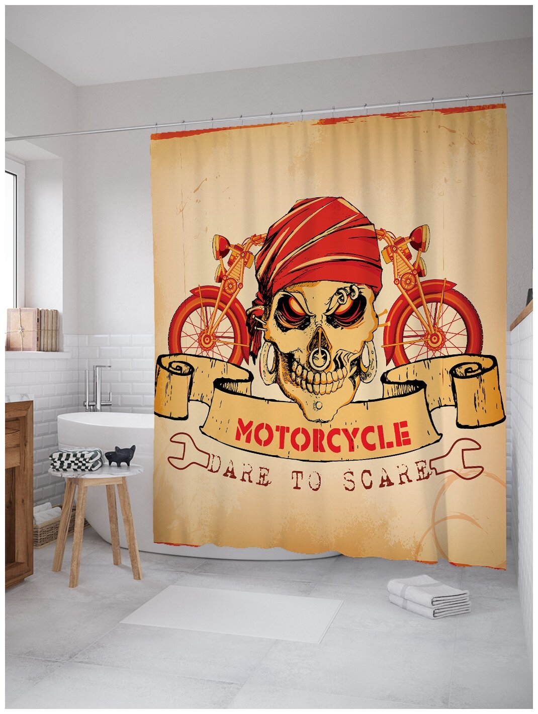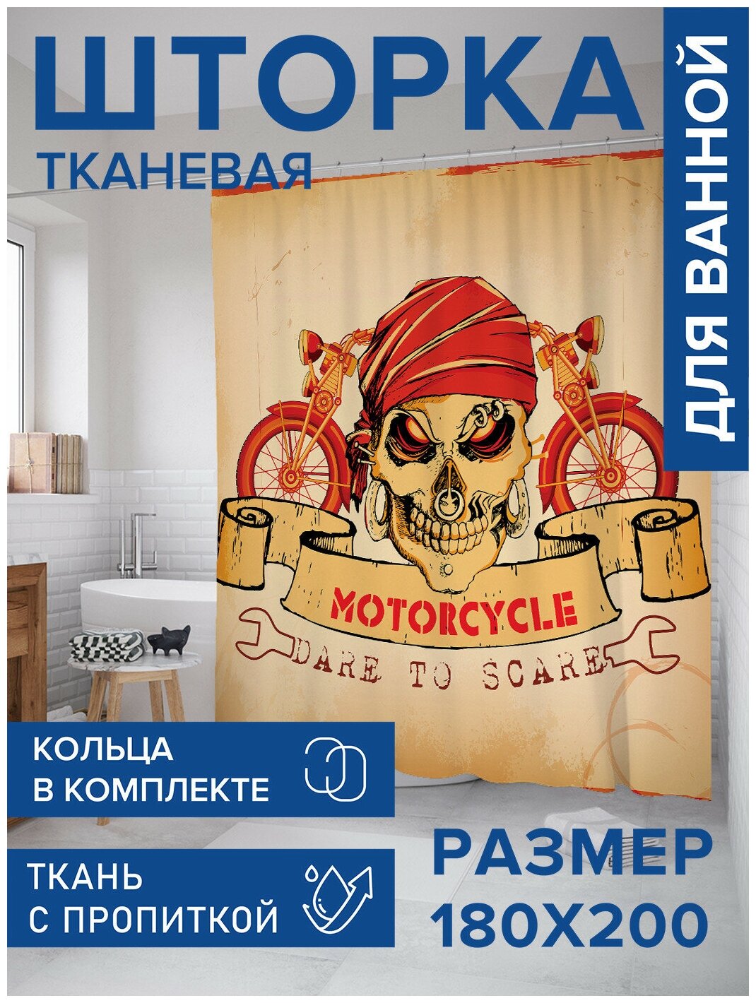 Шторка-занавеска для ванной JOYARTY Штора-занавеска для ванной из сатена с крючками Пират на мотоцикле 200х180 см (размер: 180х200)