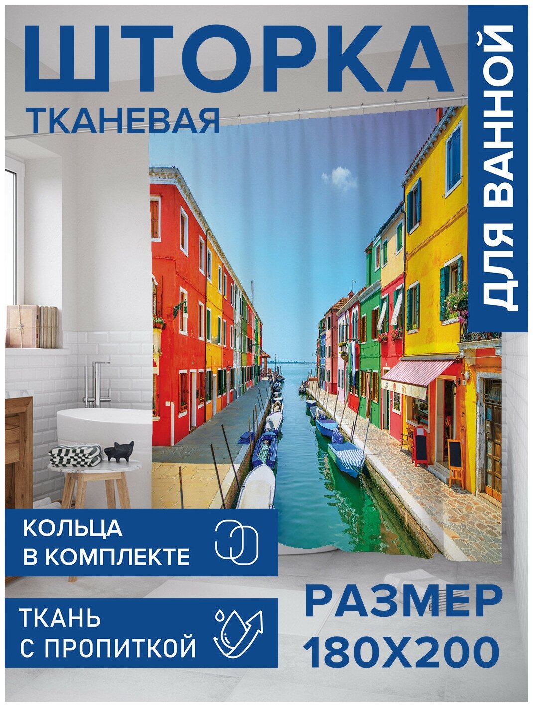 Штора для ванной JoyArty "Радужная набережная" 180х200 см с крючками Штора-занавеска для ванной из сатена с крючками Радужная набережная 200х180 см