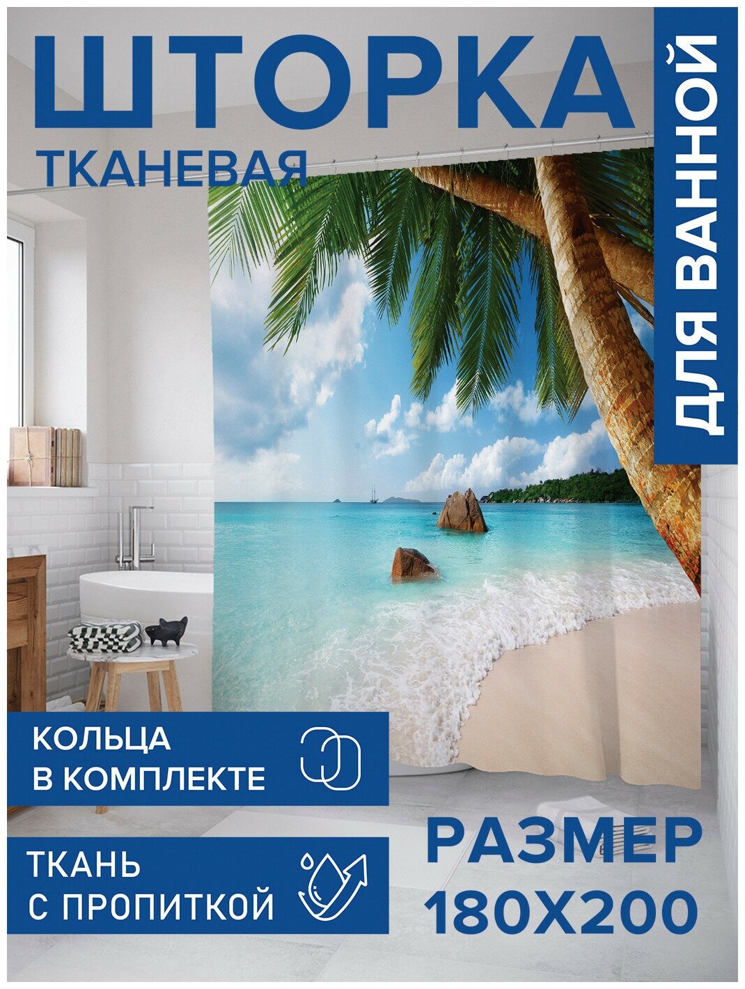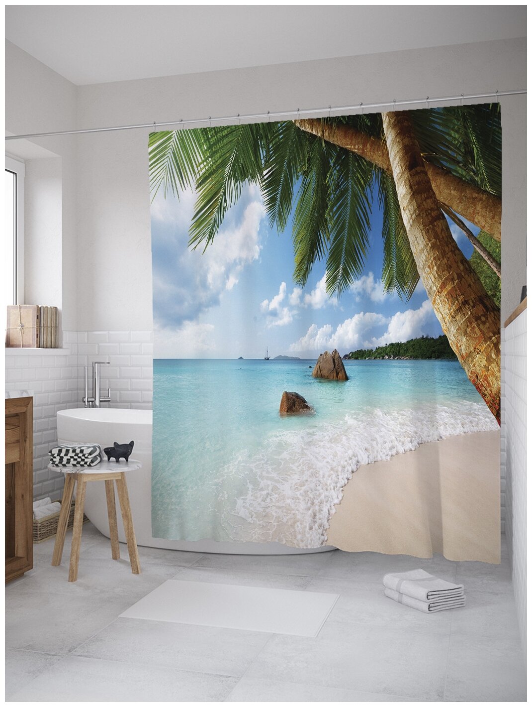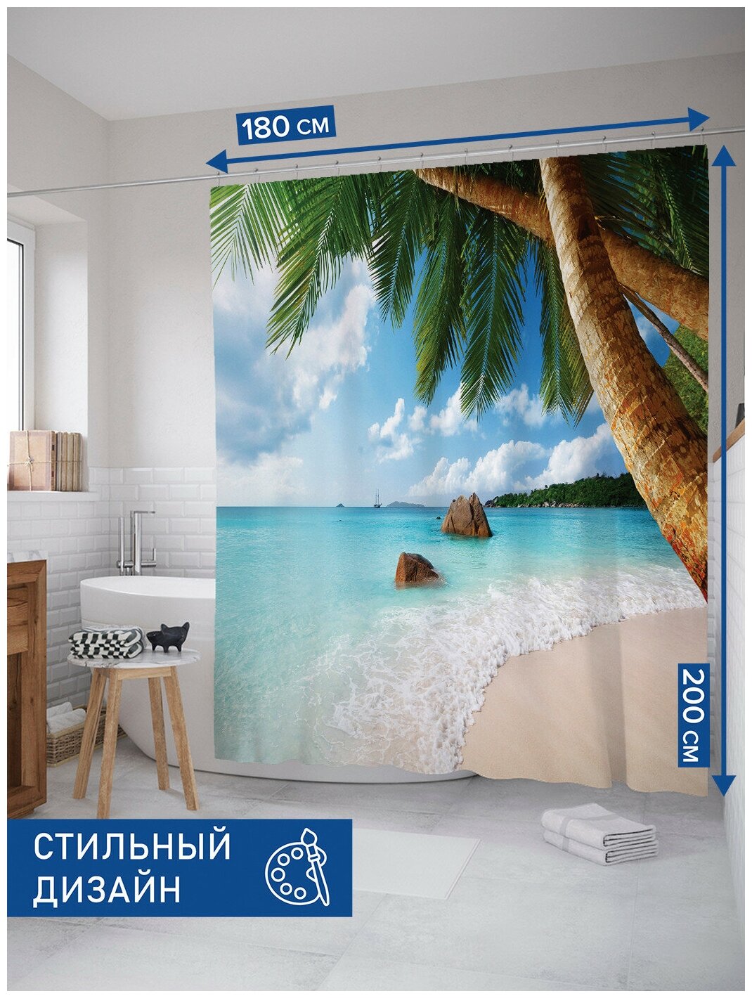 Шторка-занавеска для ванной JOYARTY Штора-занавеска для ванной из сатена с крючками На дальних берегах 200х180 см (размер: 180х200)