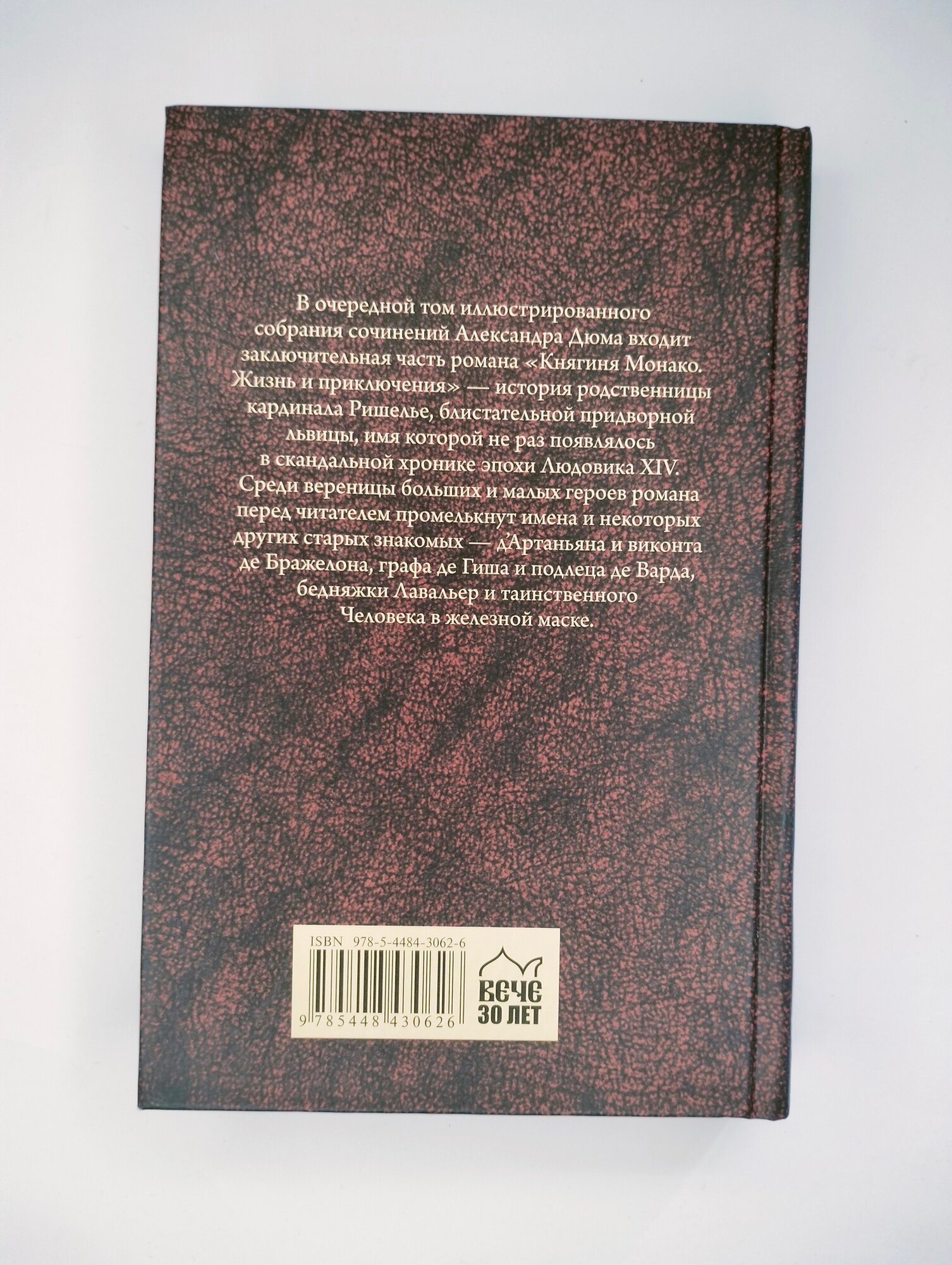В очередной том иллюстрированного собрания сочинений Александра Дюма входит заключительная часть романа «Княгиня Монако. Жизнь и приключения» — история родственницы кардинала Ришелье, блистательной придворной львицы, имя которой не раз появлялось в скандальной хронике эпохи Людовика XIV. Среди вереницы больших и малых героев романа перед читателем промелькнут имена и некоторых других старых знакомых — д’Артаньяна и виконта де Бражелона, графа де Гиша и подлеца де Варда, бедняжки Лавальер и таинственного Человека в железной маске.