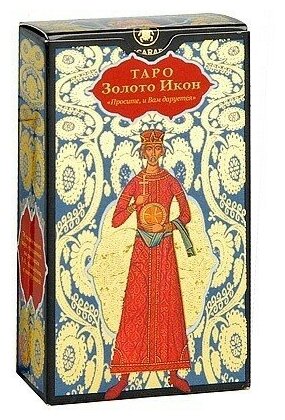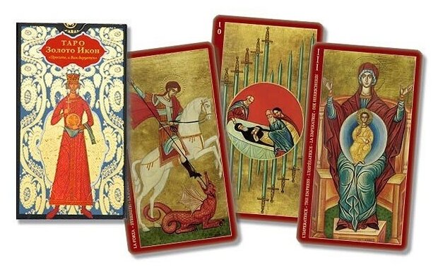 Точный перевод названия "Золотое таро царя". В отличие от колоды, продававшиеся с журнальной коллекцией "Энциклопедия таро", на этих картах есть золотое тиснение (срез простой, некрашеный). По толщине обычные тонкие карты. Для ленивых была книга Дмитрия Невского "Таро золото икон", но, вроде бы она уже давно не переиздается. В МБК достаточно ключевых слов для поиска, так что если вы не ленивы, найдете информации больше, чем в той книге. Соединение несовместимых направлений напоминает сантерию, культ Санта Муэрте, больше всего, конечно, напоминает знаменитые заговоры Натальи Степановой.