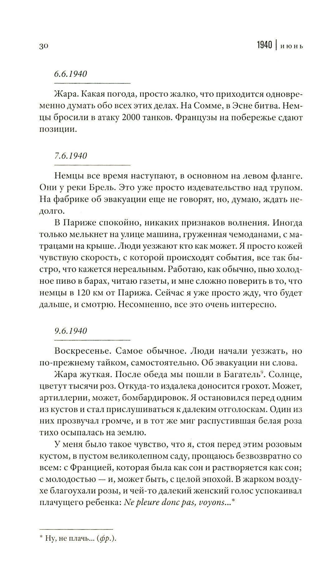 Дневник четырех военных лет, проведенных автором во Франции, стал одной из главных польских книг XX века. В нем Бобковский фиксировал развитие военных событий и в катастрофическом ключе диагностировал европейский кризис, обнаружив изрядную проницательность.