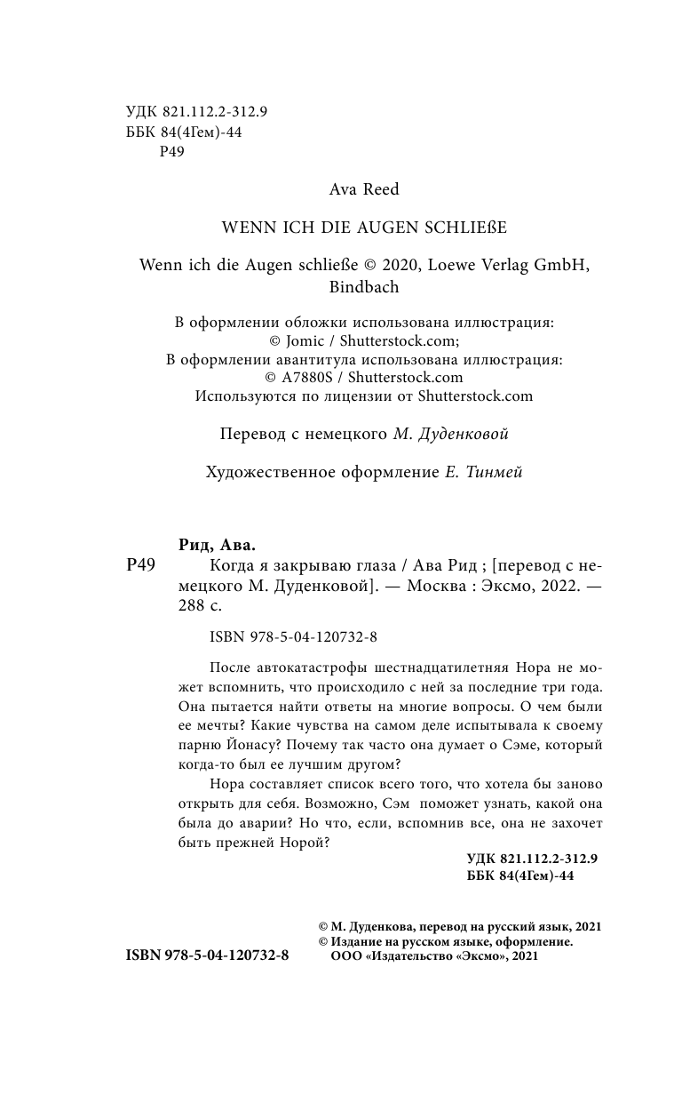 Книга: Когда я закрываю глаза (Ава Рид); Эксмо, Like Book, Редакция 1, 2021