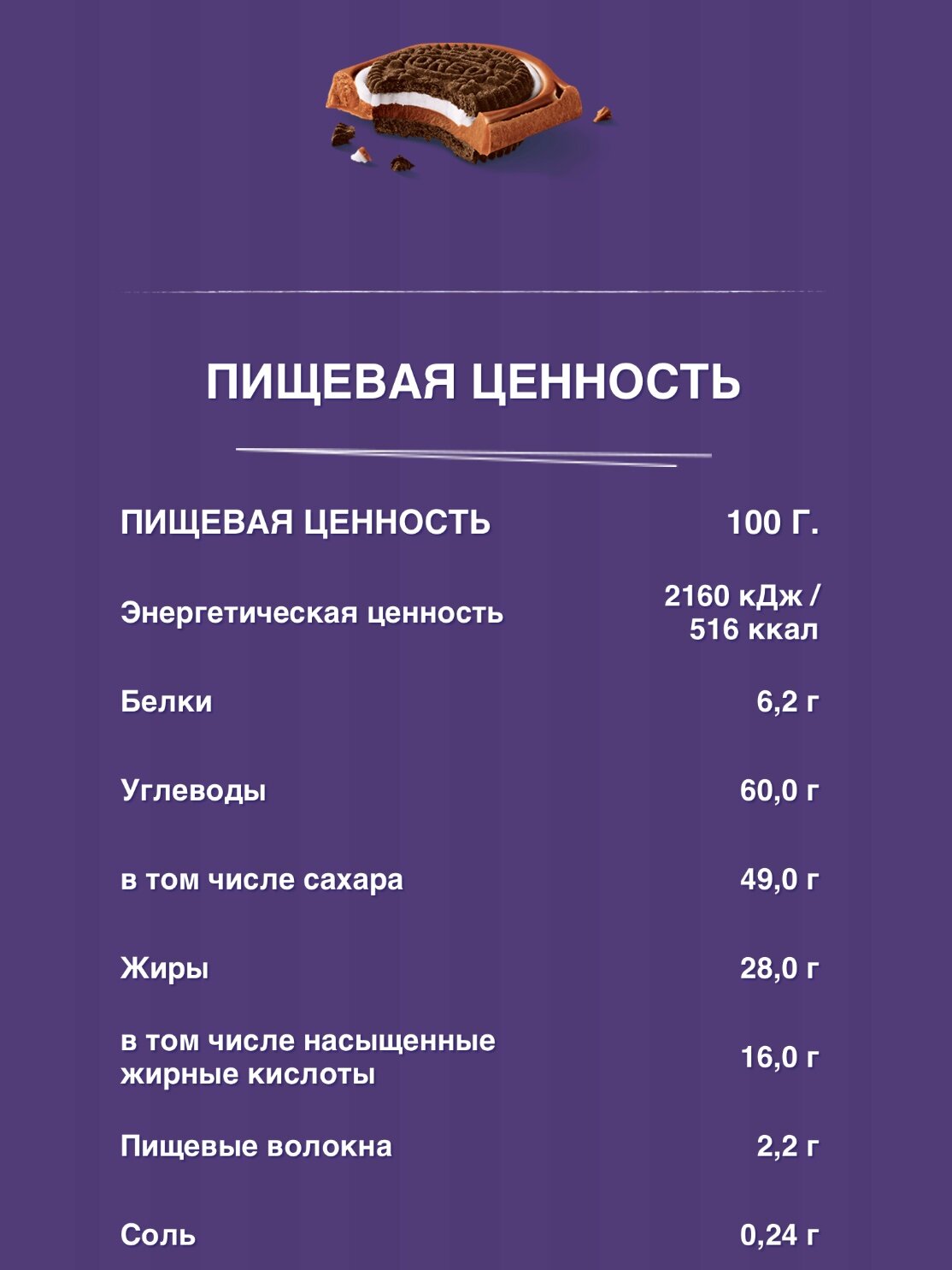 | Добавки | Печенье Oreo |