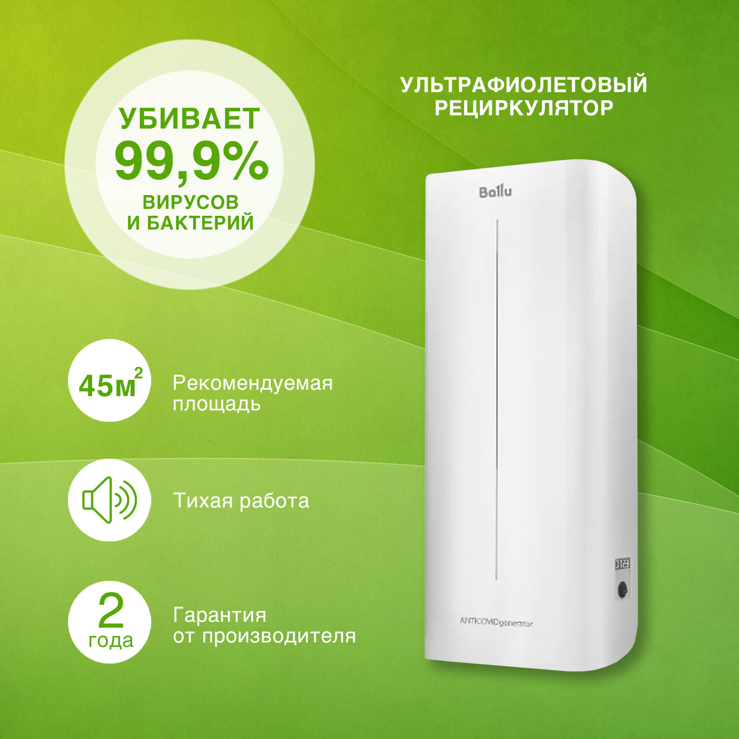 Рециркулятор Ballu RDU-100D мощность УФ лампы 15 Вт белый RDU-100D ANTICOVIDgenerator, white (белый)
