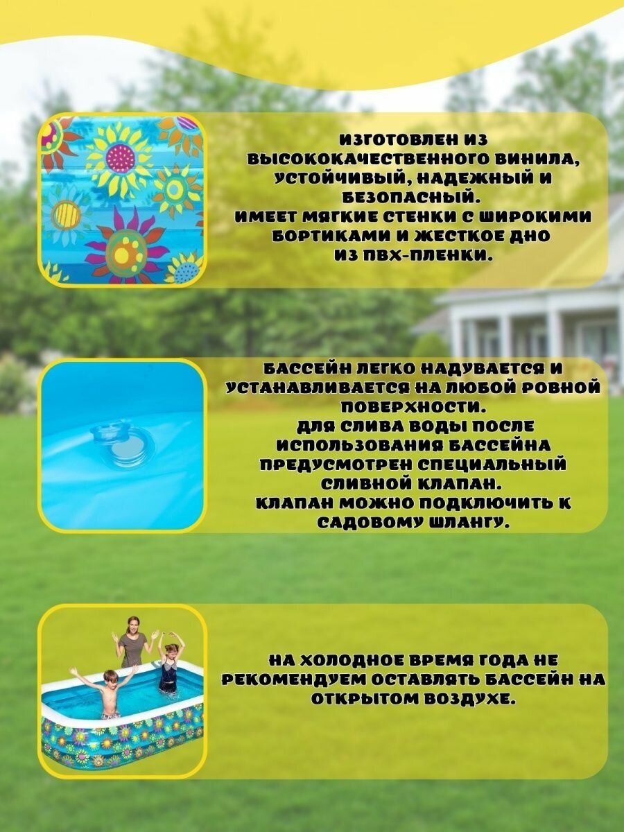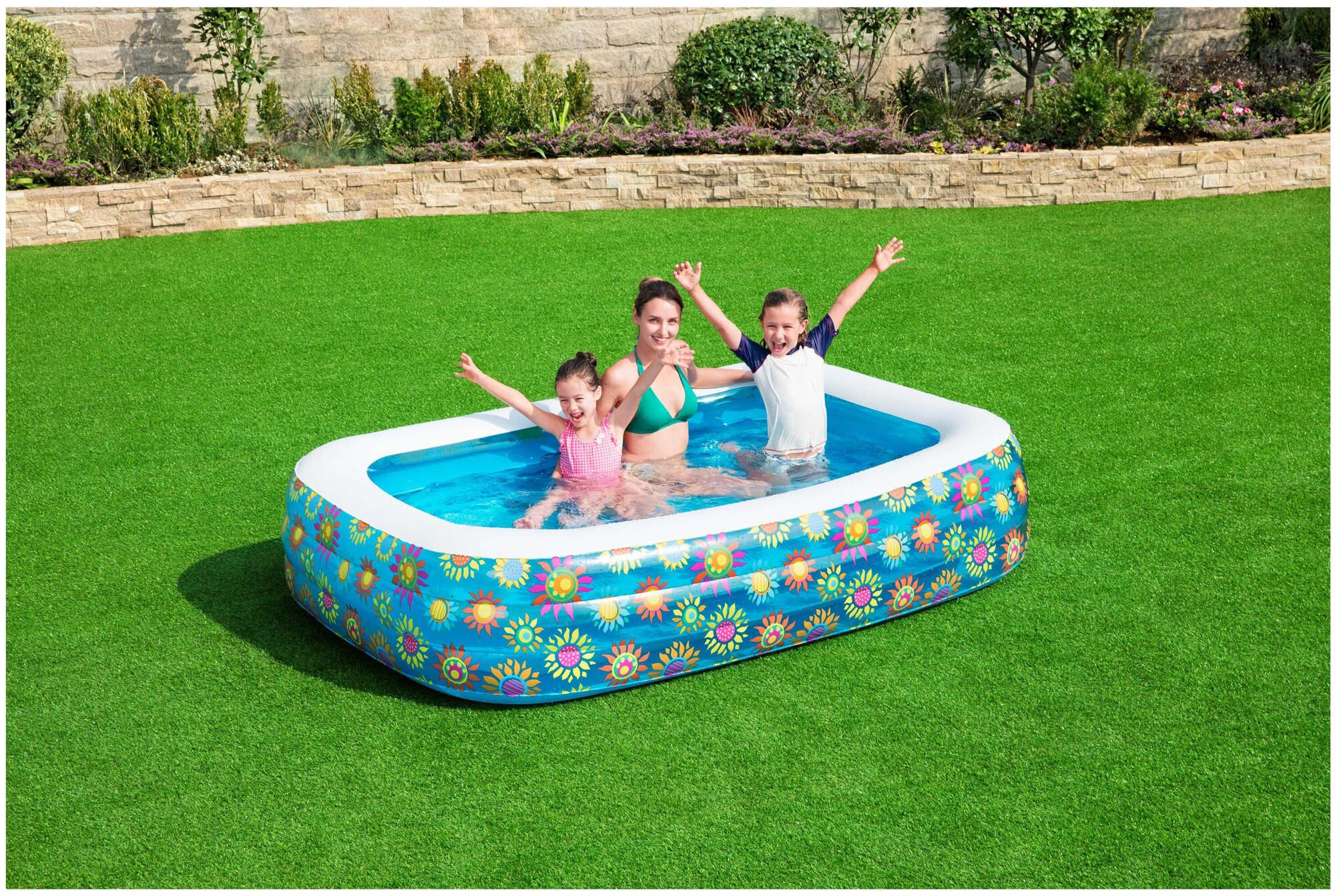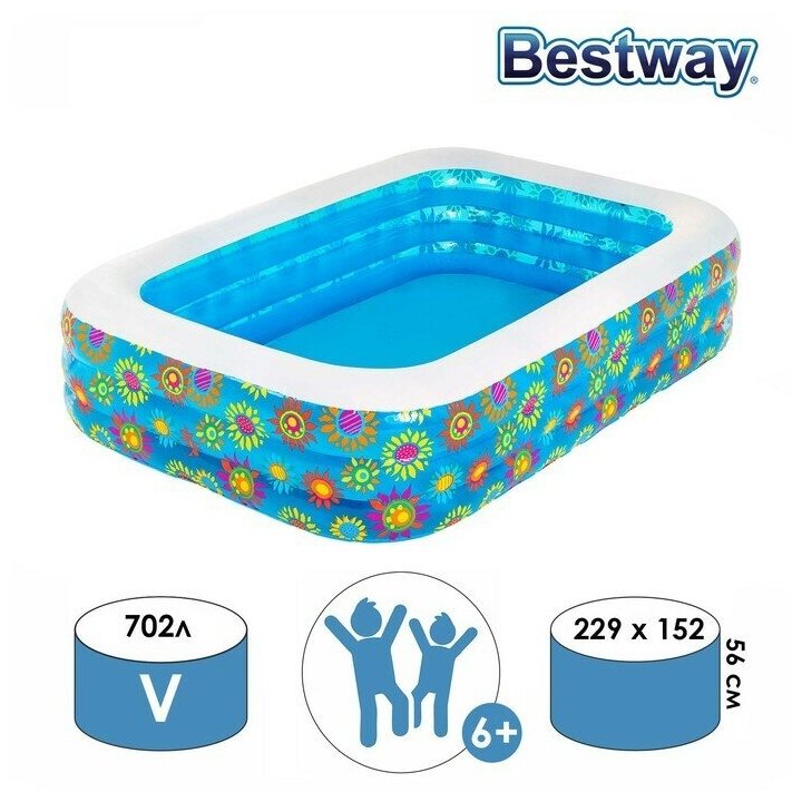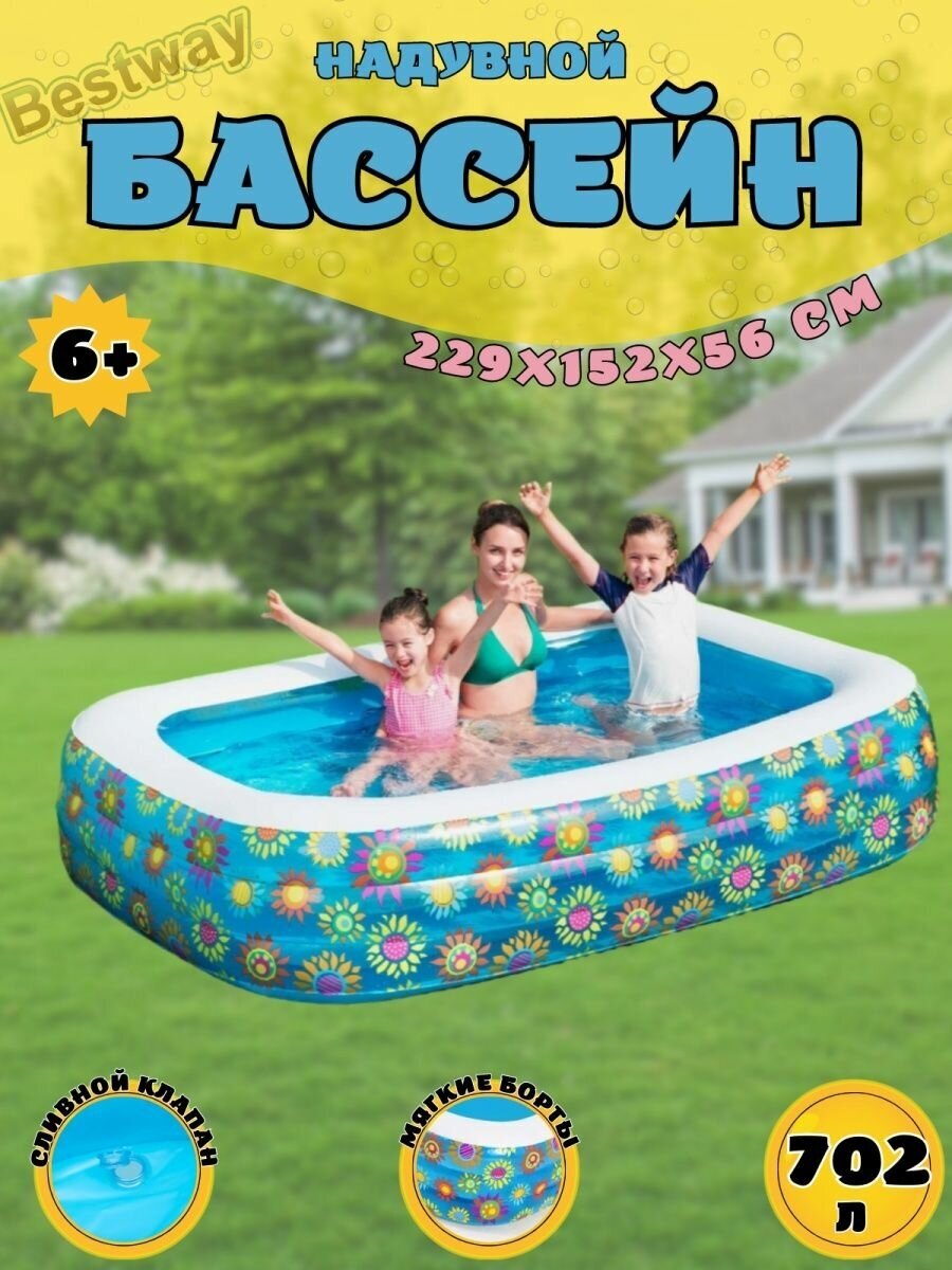 н.бассейн для детей Подводный мир 229х152х56см Bestway Детский надувной 229х152х56см "Счастливая Флора" 702л, от 6 лет (голубой)