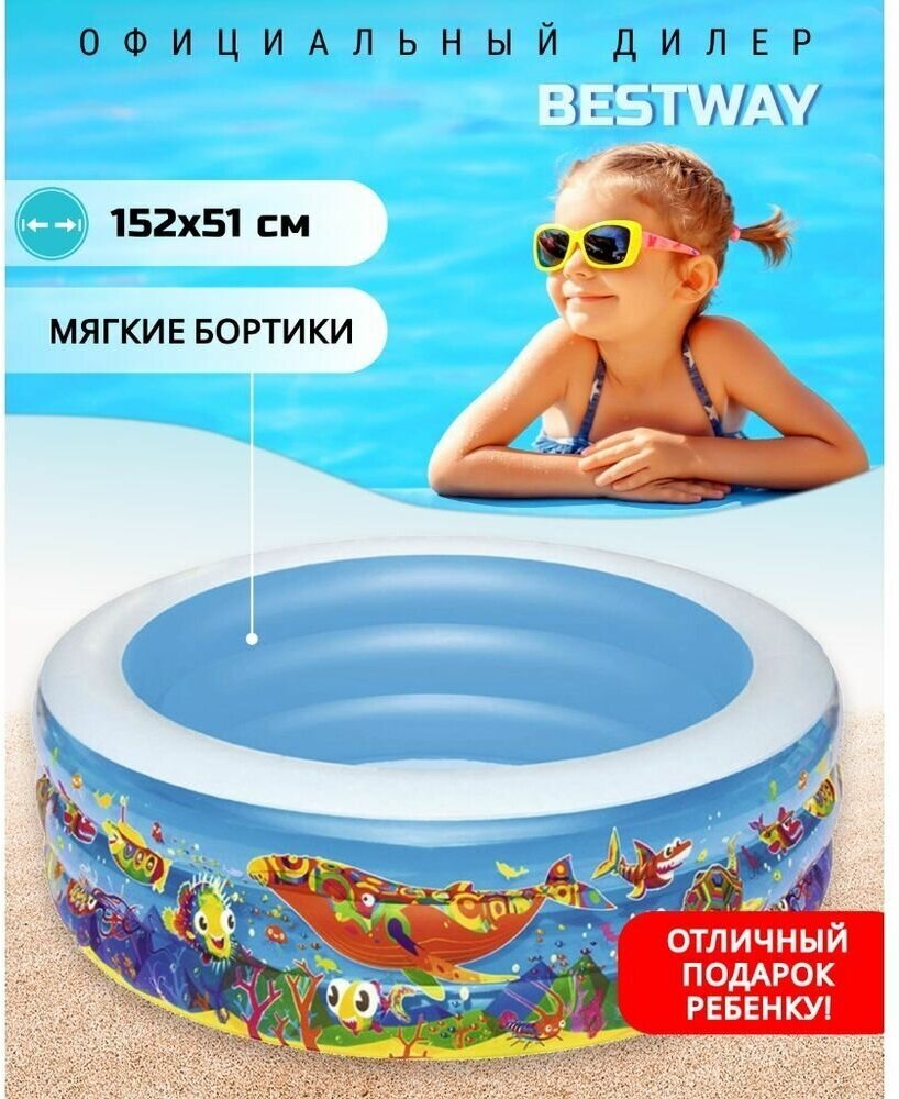 Бассейн надувной Bestway 152х51 см Play Pool 51121 400 л Детский надувной 152х51см "Подводный мир" 400л, от 6 лет (голубой)