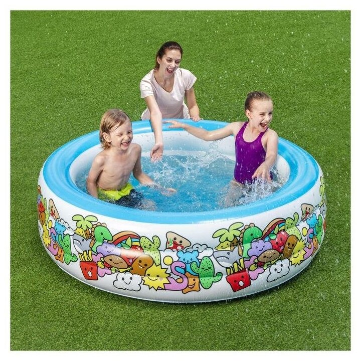 Надувной бассейн Bestway выделяется своей конструкцией и дизайном. Он изготовлен из прочного ПВХ, что гарантирует долговечность и устойчивость к внешним воздействиям. Благодаря круглой форме и внутреннему диаметру 95 см, дети смогут свободно плескаться и наслаждаться водой. Очень широкие боковые стенки и 3 воздушных кольца одинакового размера обеспечивают дополнительную безопасность и комфорт во время игр.