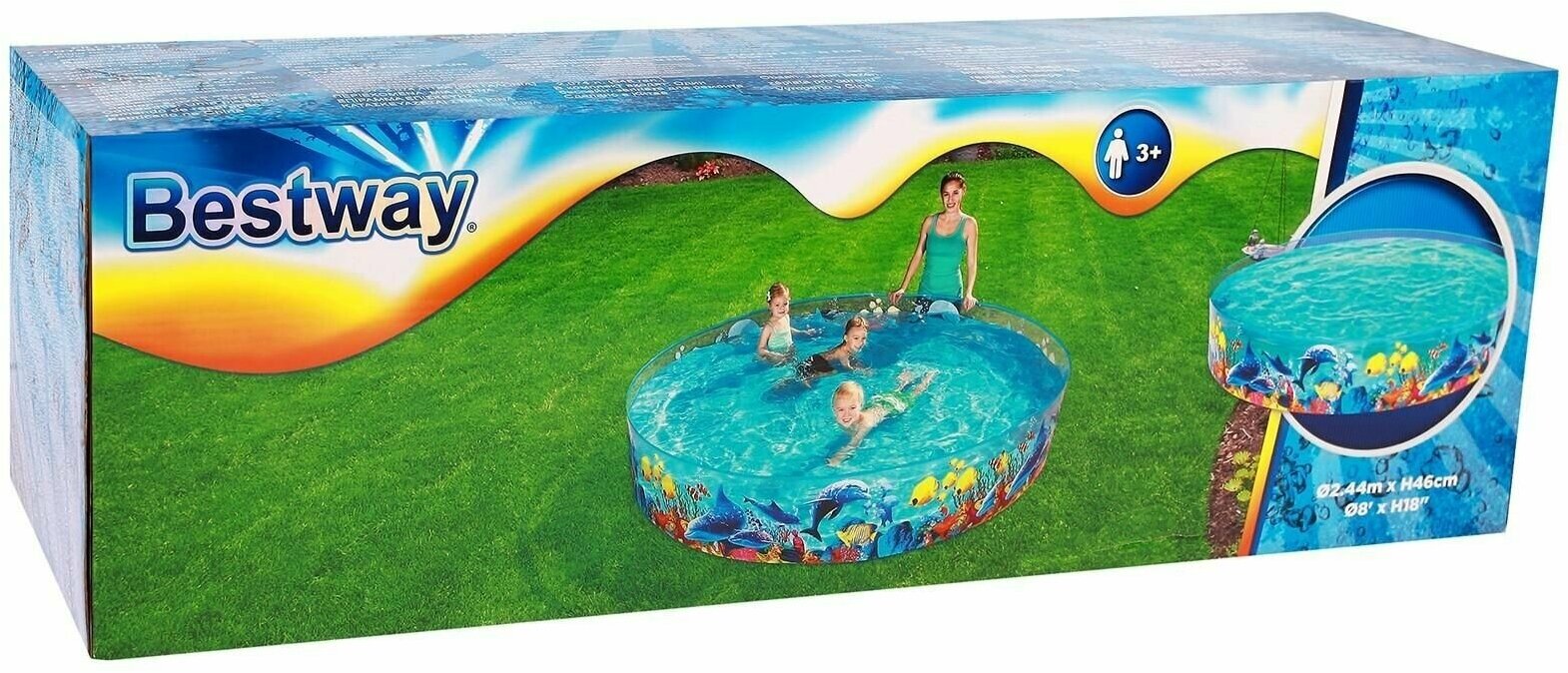 Семейный ненадувной бассейн Bestway подарит вашим детям много радости и веселья. Детский бассейн имеет сборно-разборную конструкцию в форме круга с прочным бортиком и подходит для купания детей от 3 лет. Яркий принт с морскими жителями привлекает детей и дополняет атмосферу теплого лета.