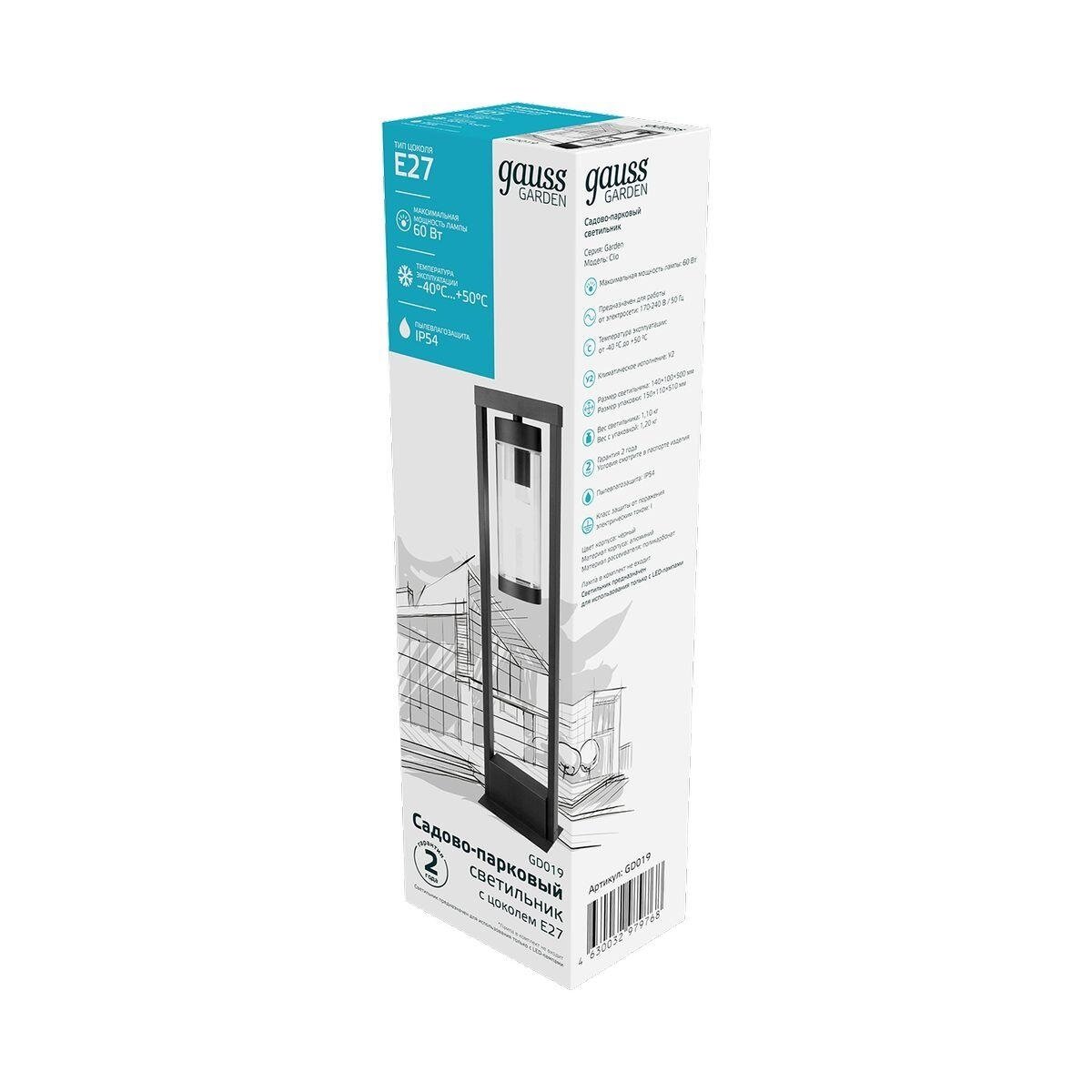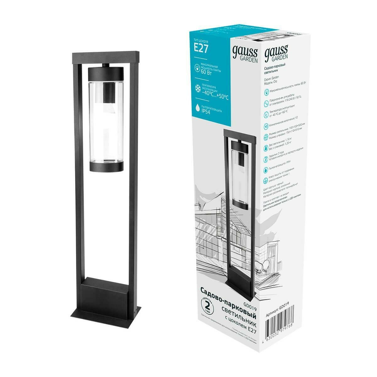 Светильник садово-парковый Gauss Clio столб 14.2*50cm 220-240V / 50Hz 1xE27 Max.60W IP: 44 1/8 Clio (черный)