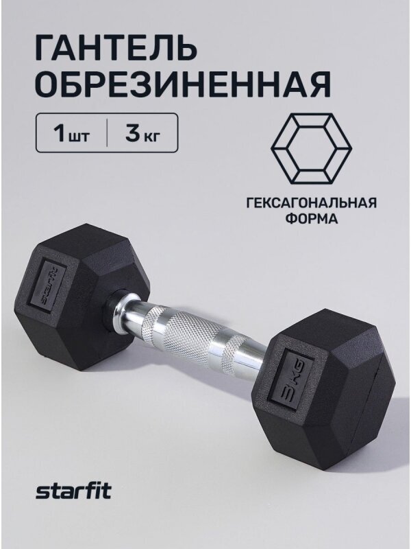Гантель Starfit DB-301 1гант. 3кг обрезин. черный (УТ-00007096)