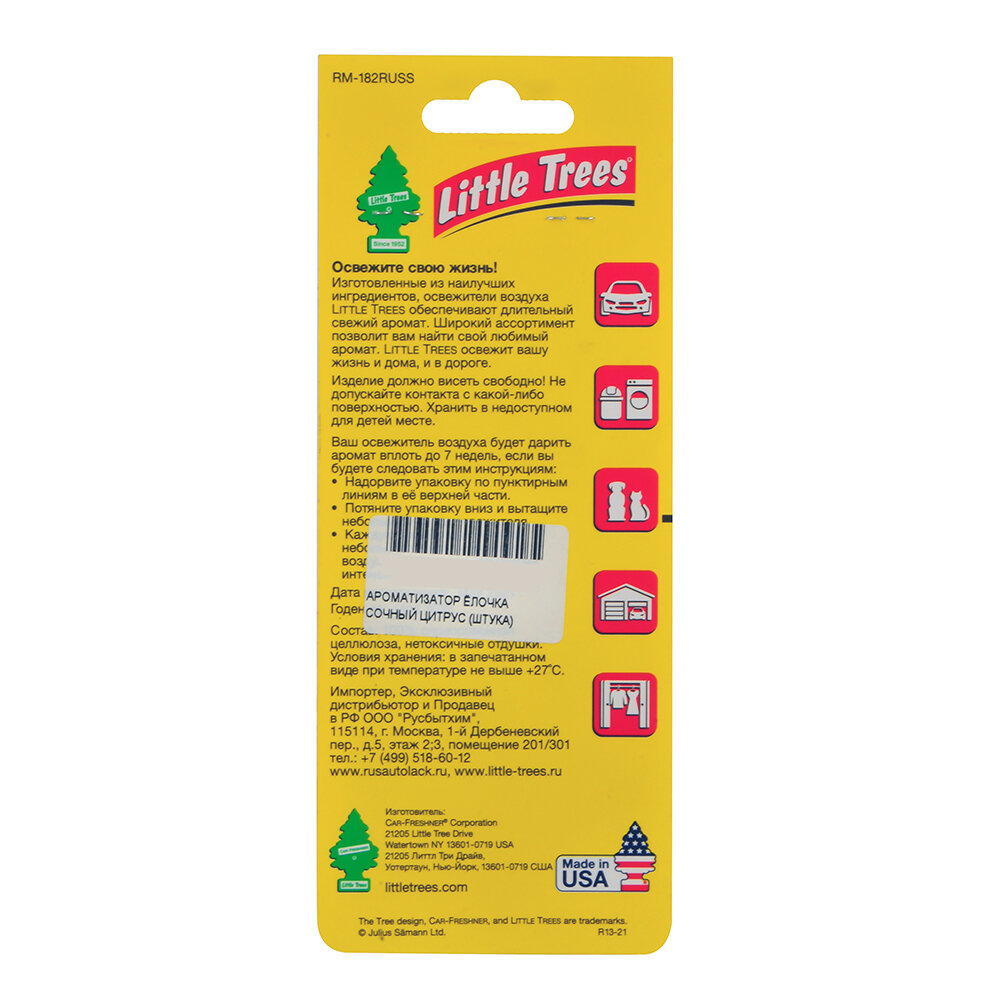 На сегодняшний день товар «Ароматизатор Ёлочка Little Trees "Сочный Цитрус" (Sliced)» можно купить с кешбеком в 1 магазине: Яндекс.Маркет