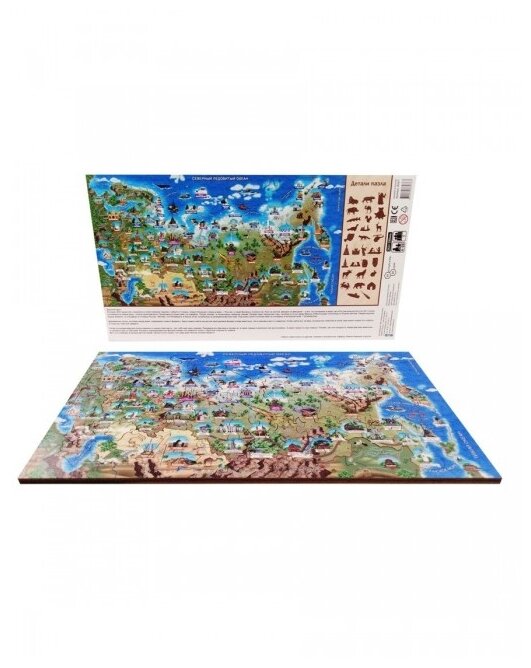 А в Петербурге, в белые ночи, полюбуешься разведенными мостами. Под конец своего путешествия ты попадешь в янтарный край г. Калининград. Деревянные пазлы, которые перед вами, совершенно нового формата. Здесь можно найти как детали причудлевой формы в виде животных, так и знакомых мест и символов.