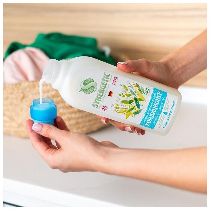 Благодаря инновационному компоненту в составе — целлюлазе — бальзам-кондиционер помогает сохранить первоначальный вид белья, препятствует появлению ка