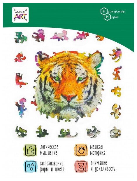 Фигурный деревян.пазл ANIMAL ART - ТИГР (108 дет.) Нескучные игры
